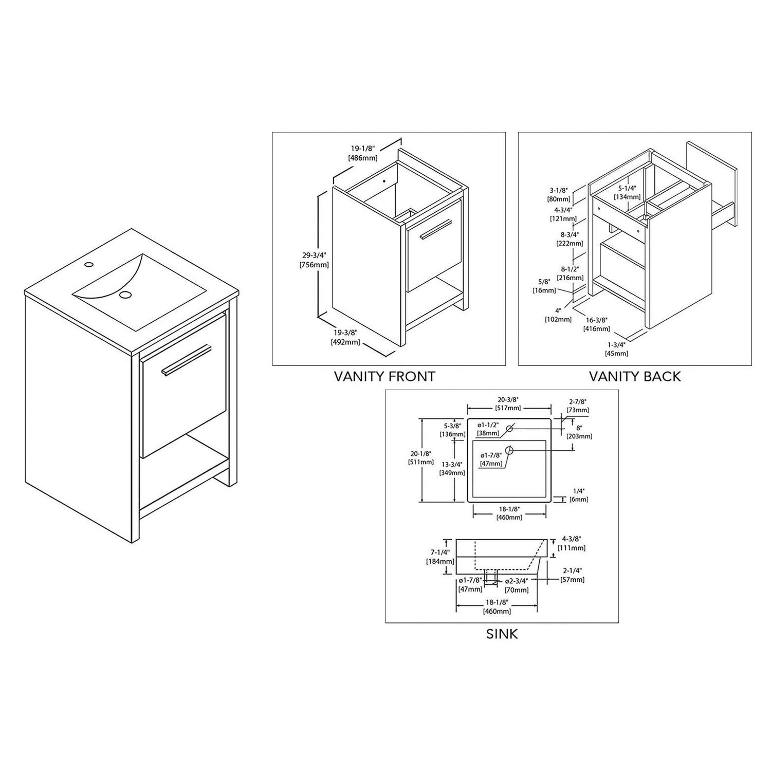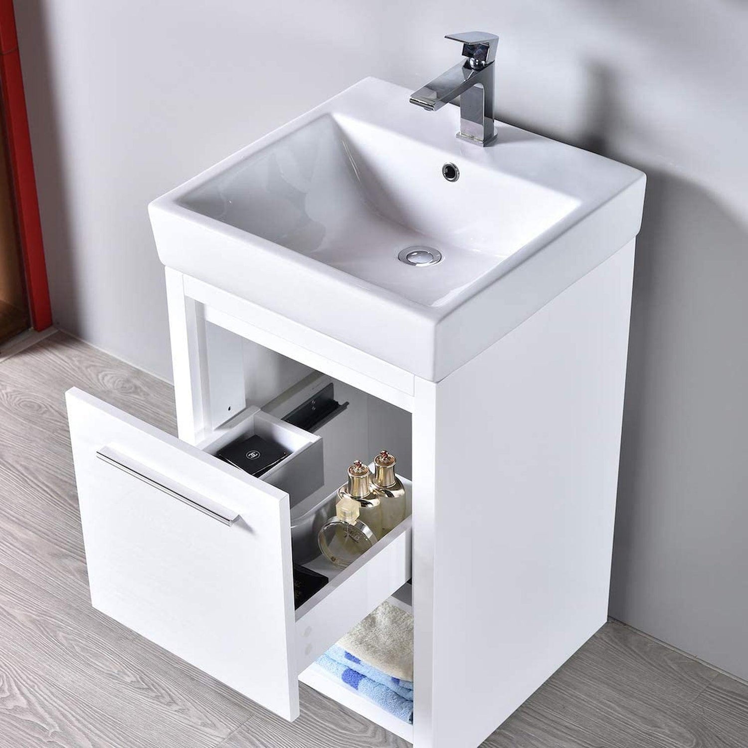 Blossom Milan 20" 1-Drawer White Freestanding Vanity Set With Ceramic Drop-In Single Sink