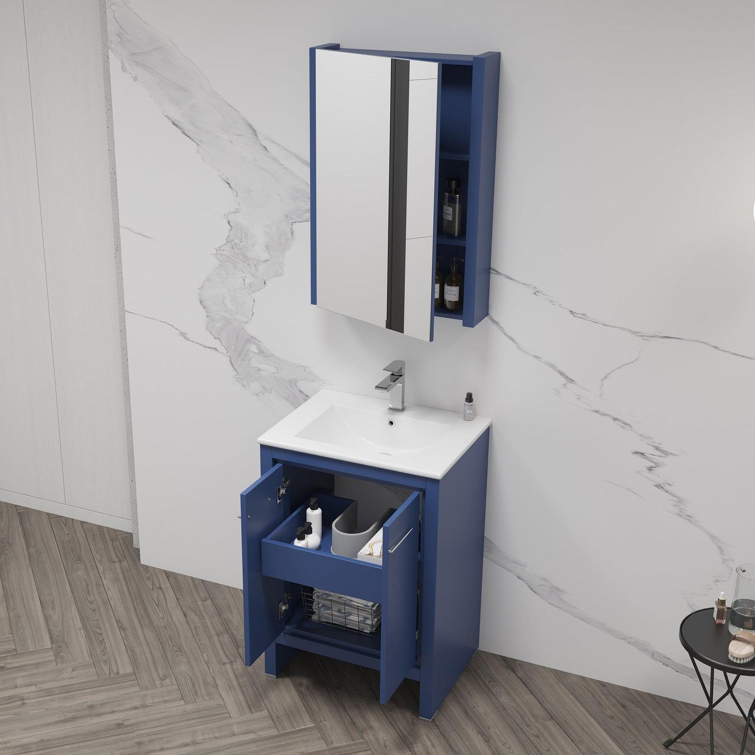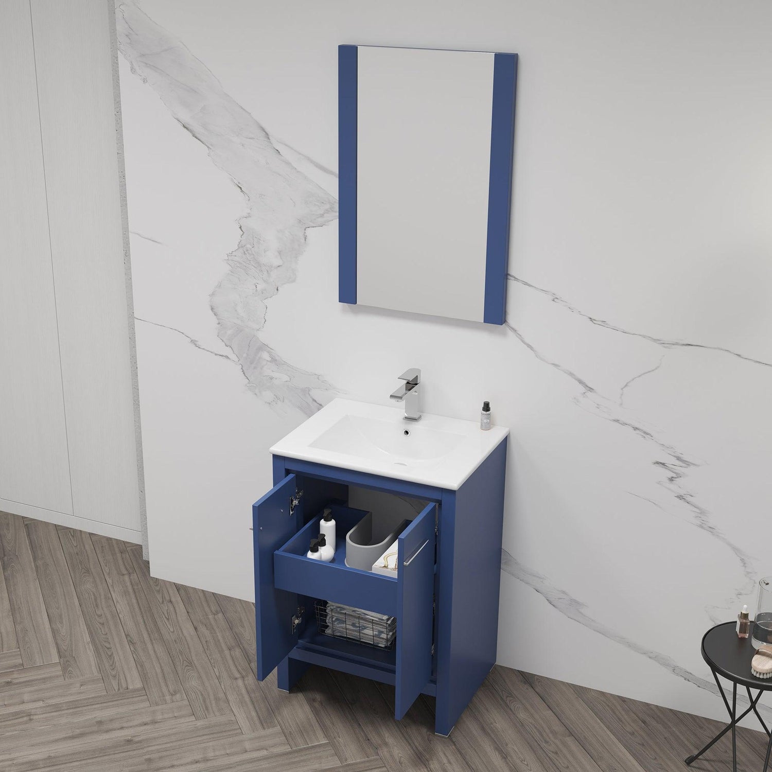 Blossom Milan 24" 2-Door 1-Drawer Navy Blue Freestanding Vanity Base