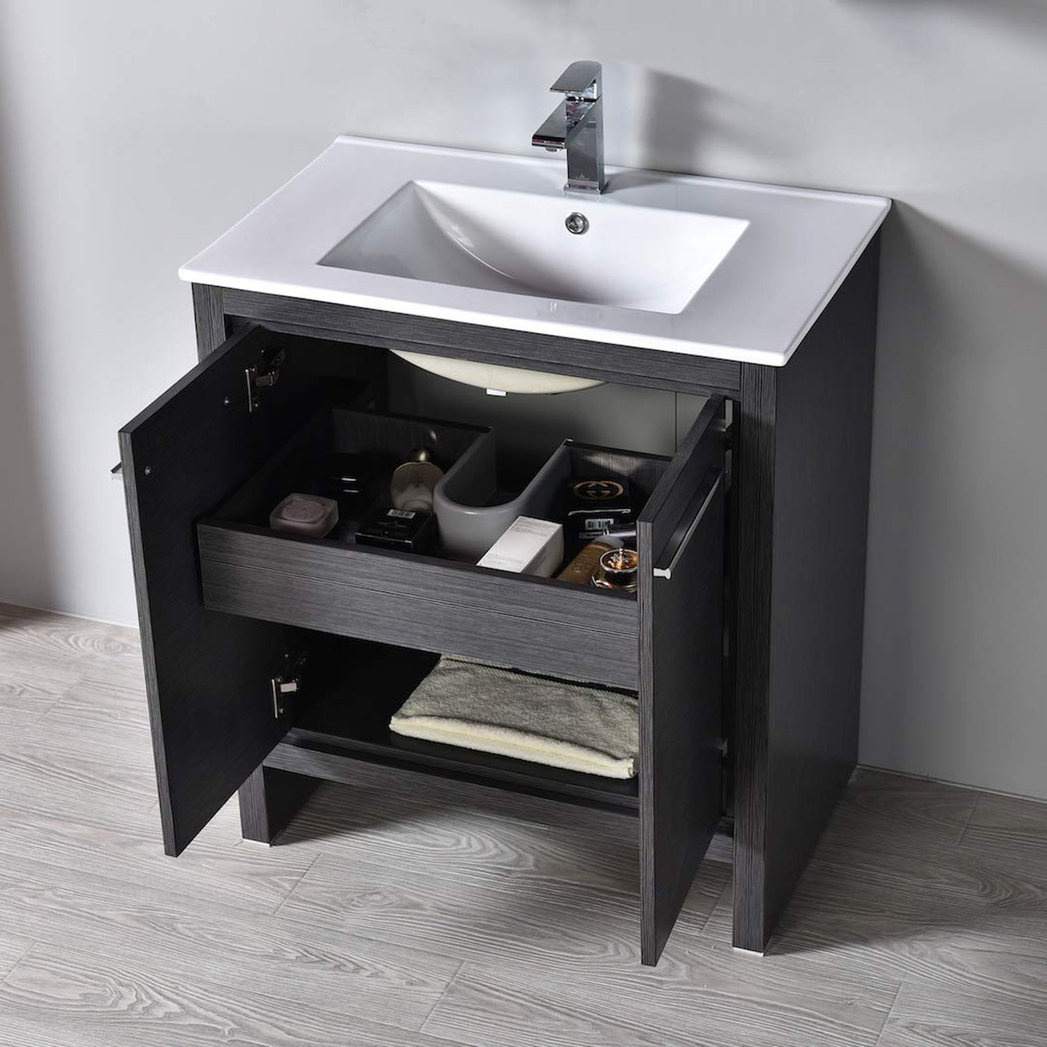 Blossom Milan 30" 2-Door 1-Drawer Silver Gray Freestanding Vanity With Ceramic Drop-In Single Sink