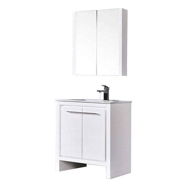 Blossom Milan 30" 2-Door 1-Drawer White Freestanding Vanity With Ceramic Drop-In Single Sink And Mirrored Medicine Cabinet