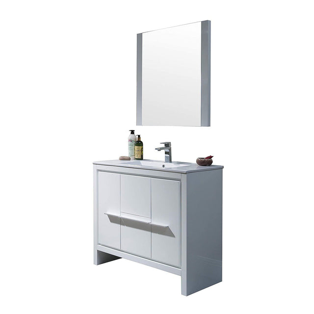 Blossom Milan 36" 2-Door 2-Drawer White Freestanding Vanity With Ceramic Drop-In Single Sink And Mirror