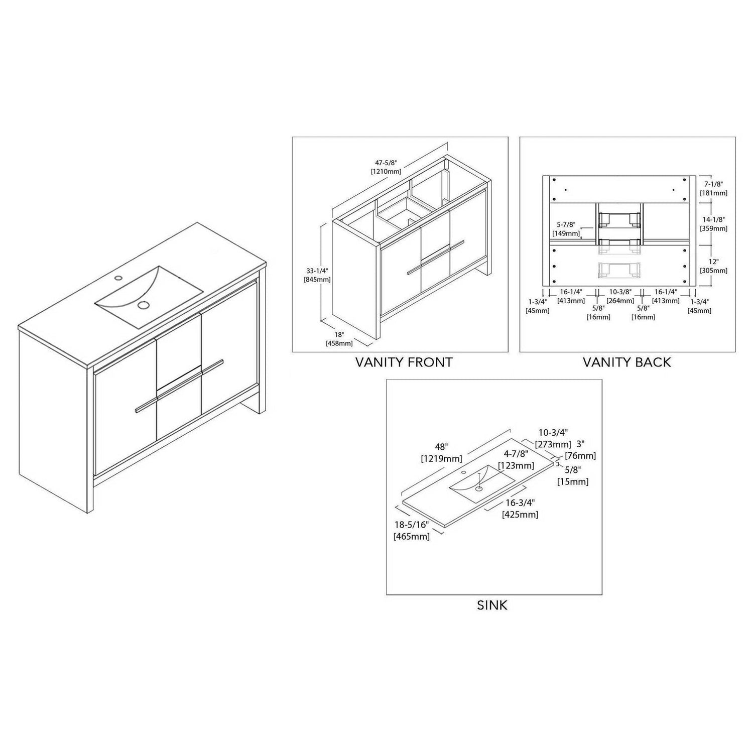 Blossom Milan 48" 2-Door 2-Drawer Silver Gray Freestanding Vanity With Ceramic Drop-In Single Sink