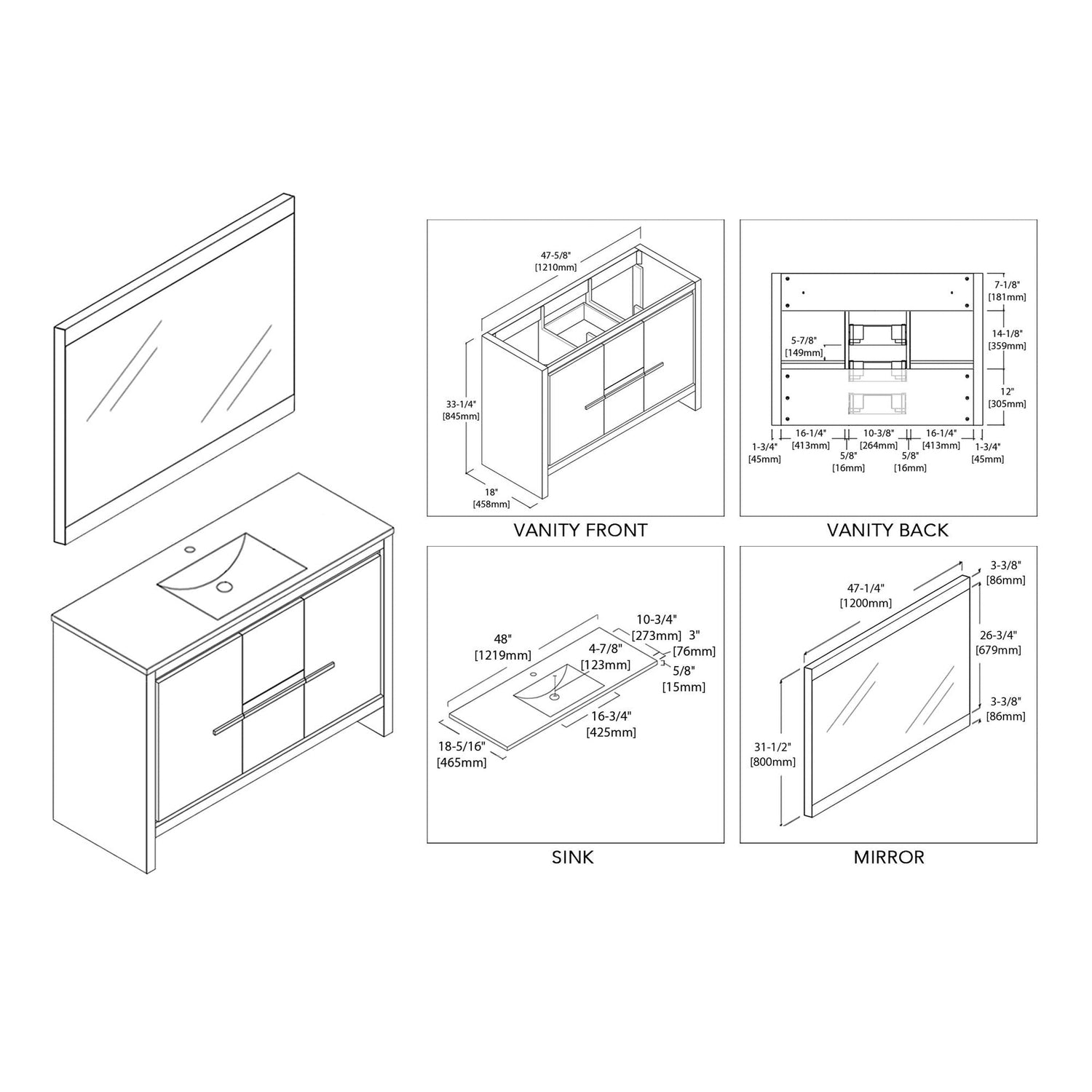Blossom Milan 48" 2-Door 2-Drawer Silver Gray Freestanding Vanity With Ceramic Drop-In Single Sink And Mirror