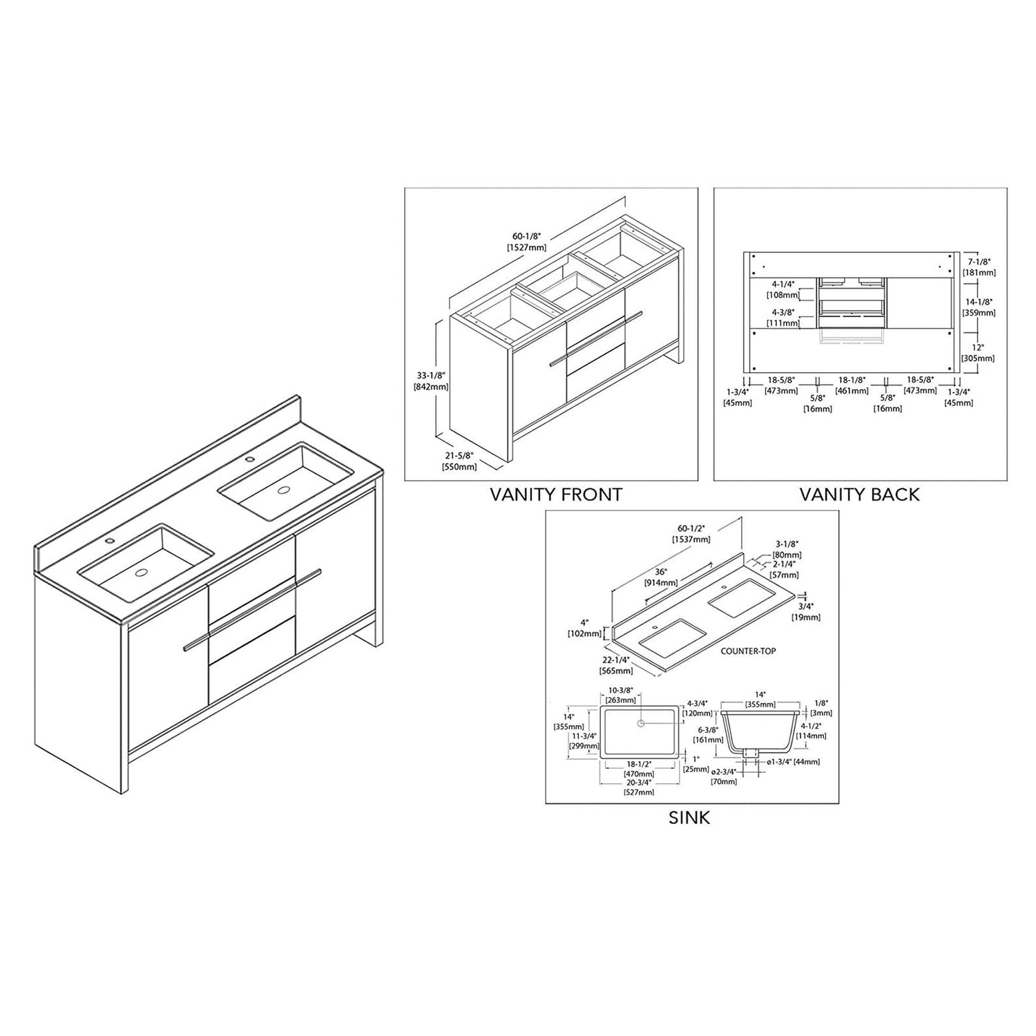 Blossom Milan 60" 2-Door 3-Drawer Silver Gray Freestanding Vanity With Ceramic Drop-In Single Sink