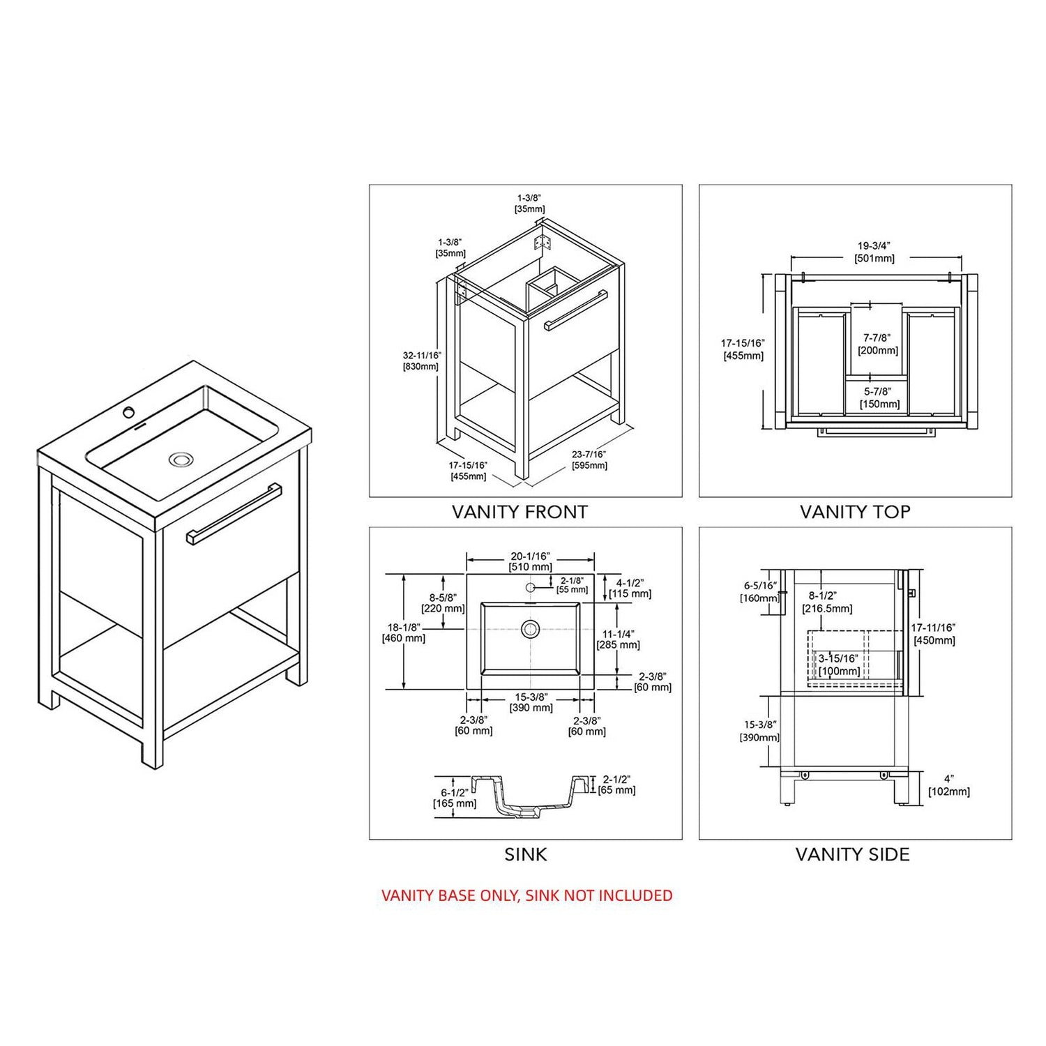 Blossom Riga 20" 1-Drawer Metal Gray Freestanding Vanity Base With An Open Shelf