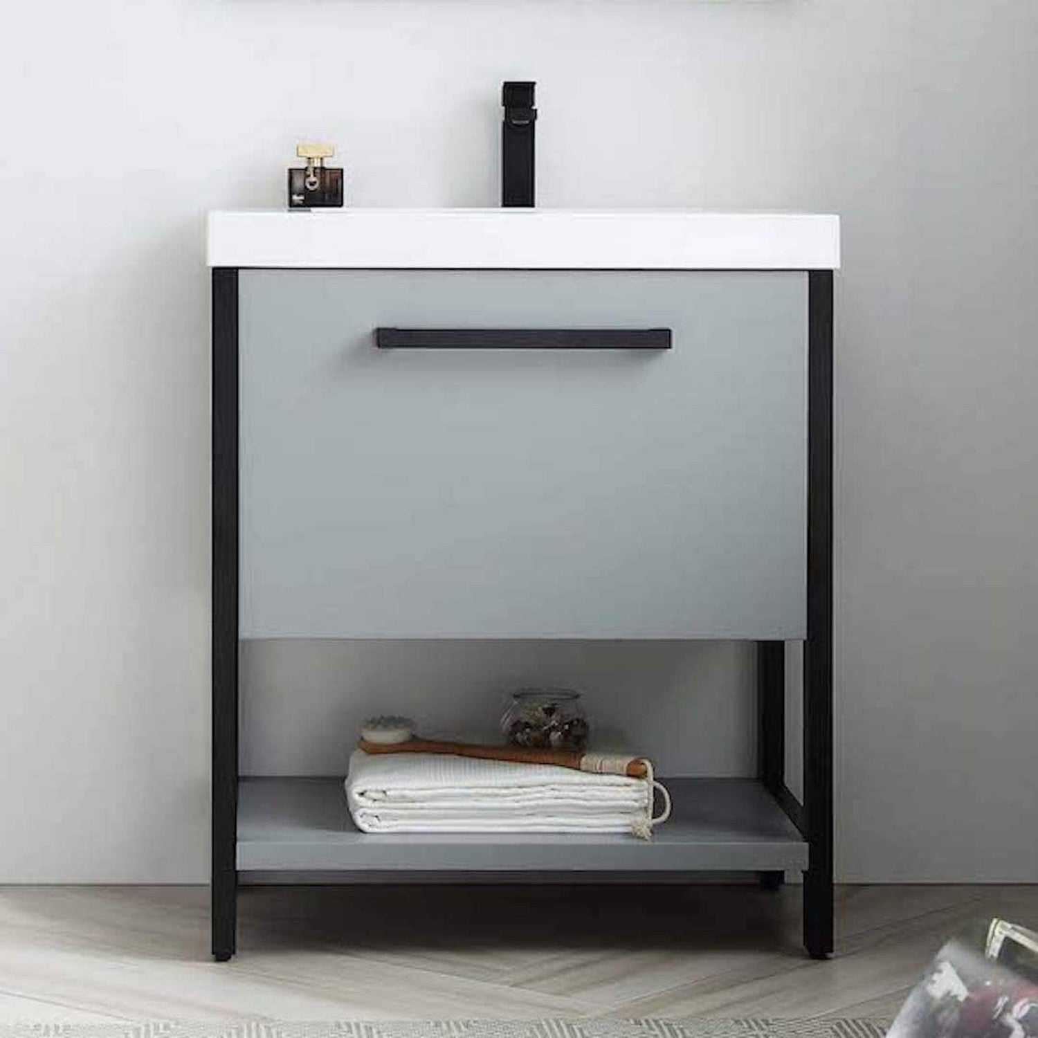 Blossom Riga 30" 1-Drawer Metal Gray Freestanding Vanity Set With Acrylic Drop-In Single Sink