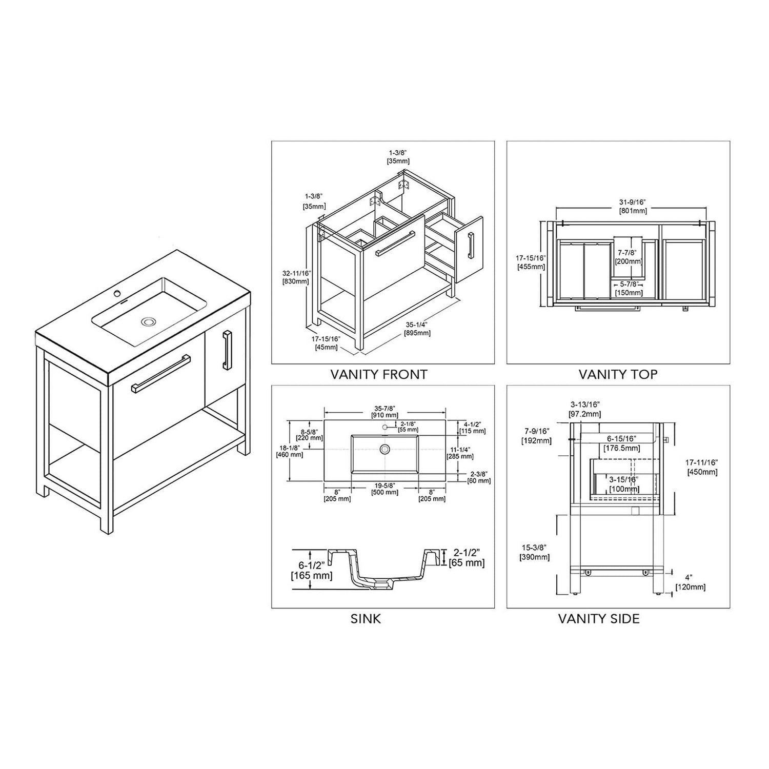 Blossom Riga 36" 2-Drawer Glossy White Freestanding Vanity Set With Acrylic Drop-In Single Sink