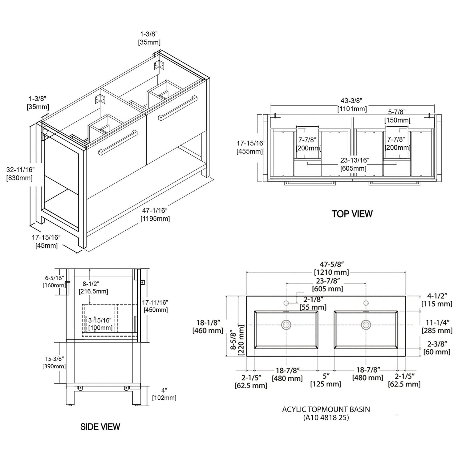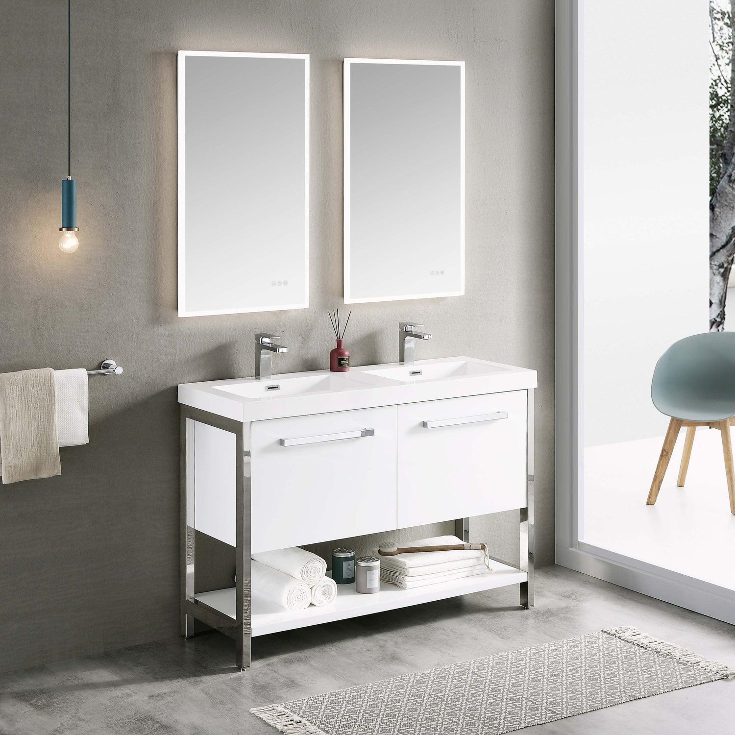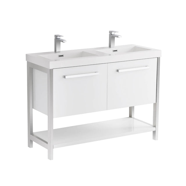 Blossom Riga 48" 2-Drawer Glossy White Freestanding Vanity Set With Acrylic Drop-In Double Sinks
