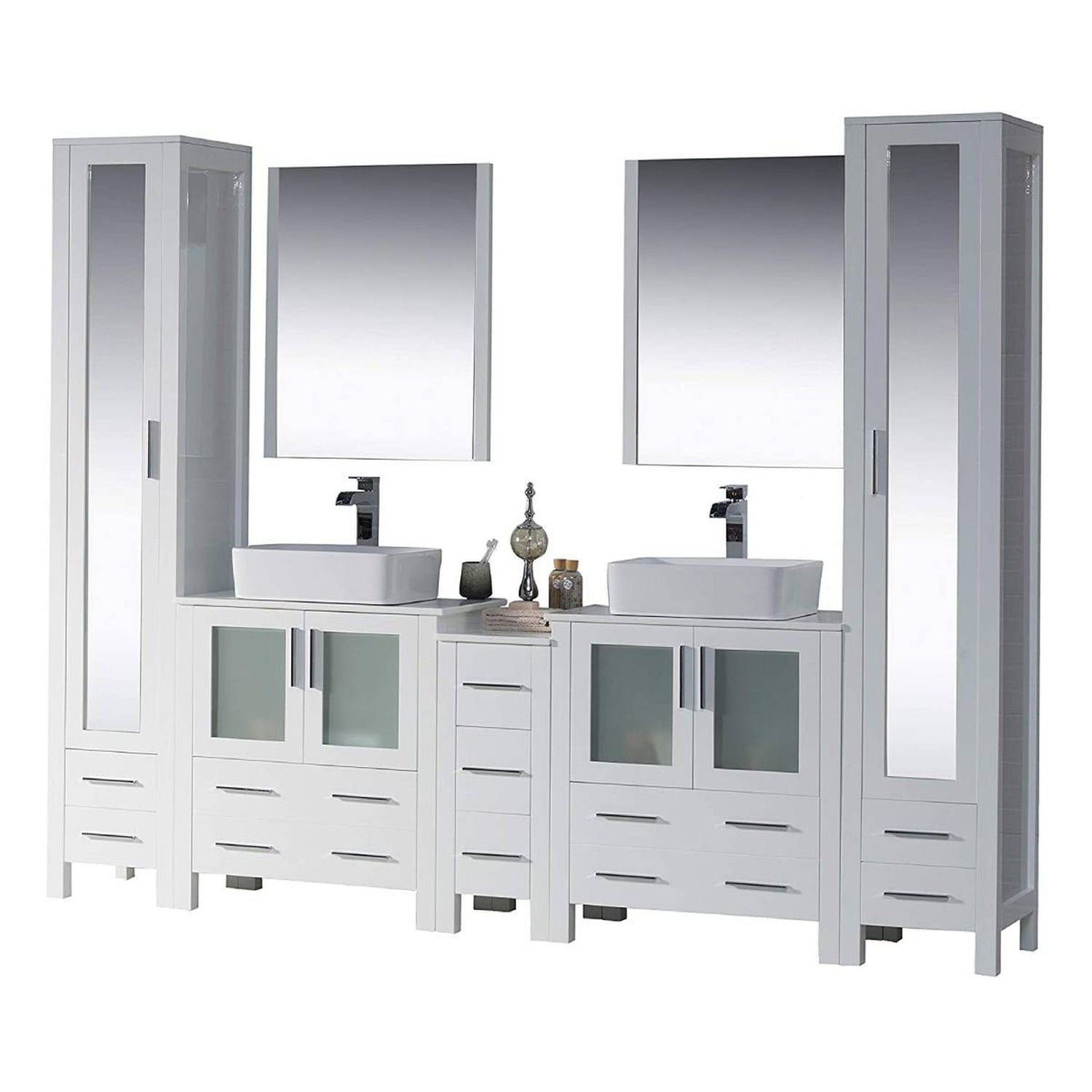 Blossom Sydney 102" White Freestanding Vanity With Ceramic Double Vessel Sinks and Mirror