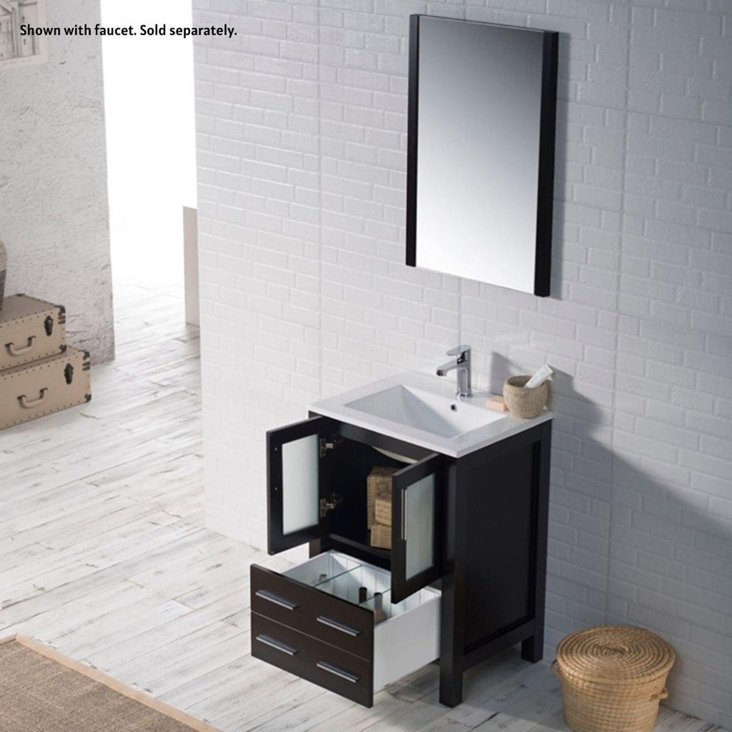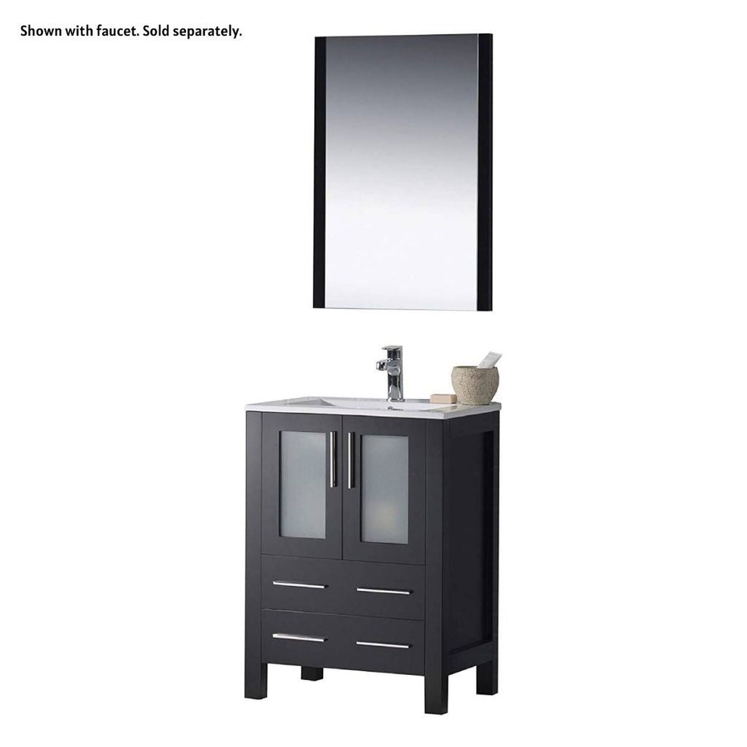 Blossom Sydney 24" Espresso Freestanding Vanity Set With Integrated Single Sink Ceramic Top and Mirror