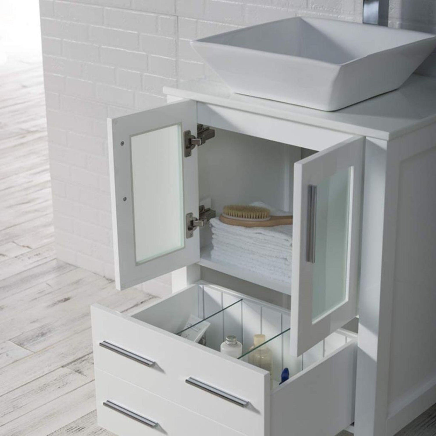 Blossom Sydney 24" White Freestanding Vanity Set With Ceramic Vessel Single Sink and Mirror