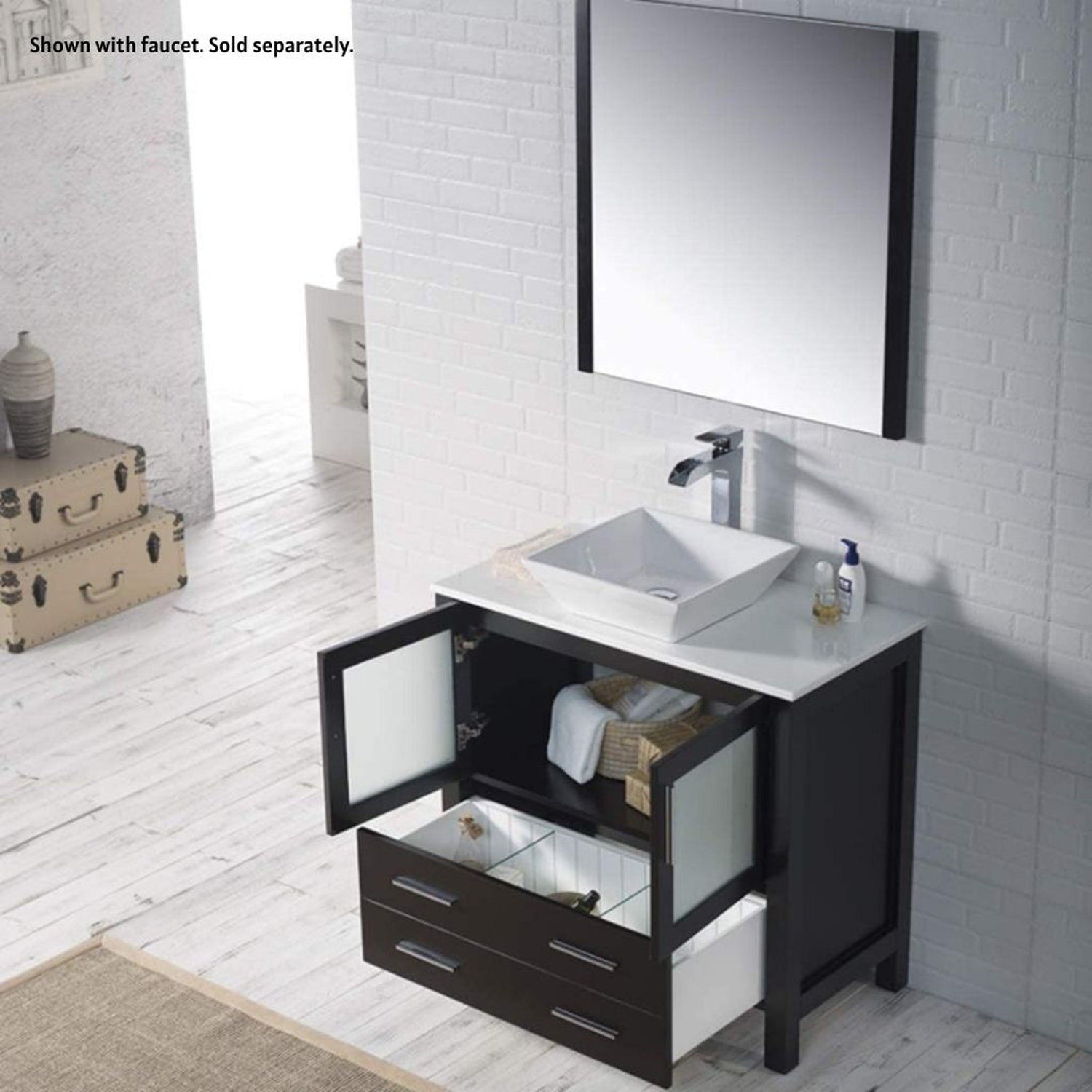 Blossom Sydney 30" Espresso Freestanding Vanity Set With Ceramic Vessel Single Sink and Mirror