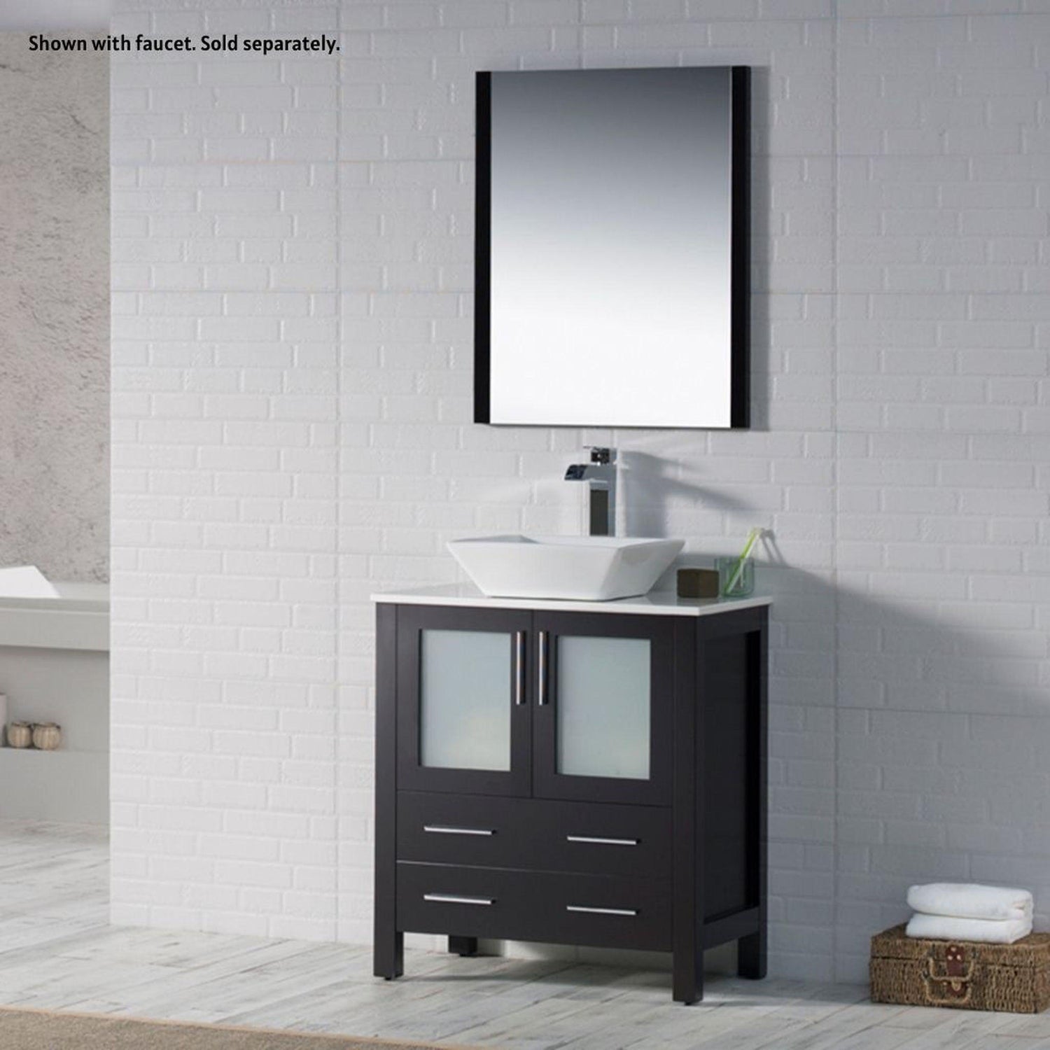 Blossom Sydney 30" Espresso Freestanding Vanity Set With Integrated Single Sink Ceramic Top and Mirror