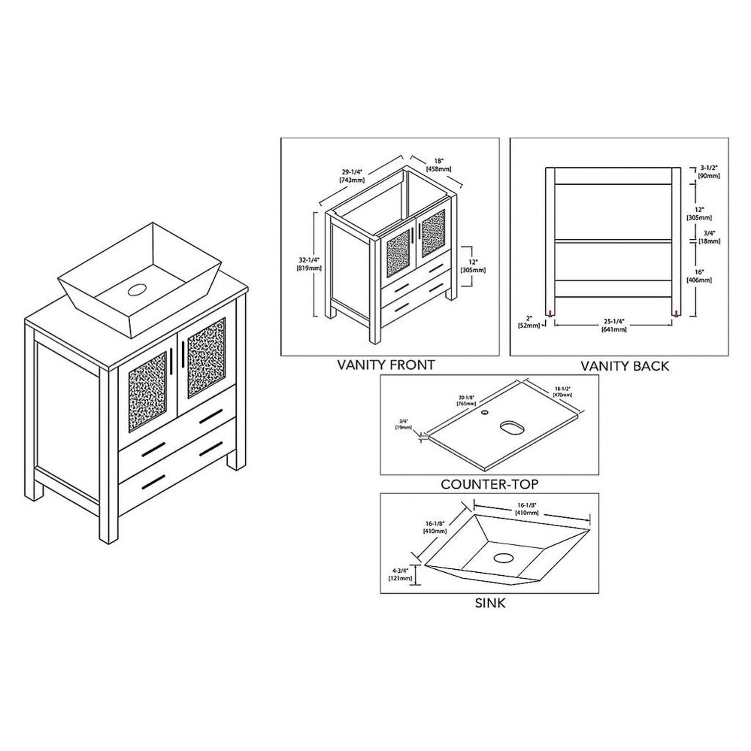 Blossom Sydney 30" Metal Gray Freestanding Vanity Set With Ceramic Vessel Single Sink