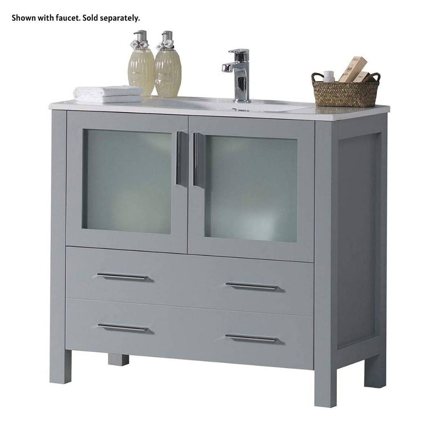 Blossom Sydney 36" Metal Gray Freestanding Vanity Set With Integrated Single Sink Ceramic Top