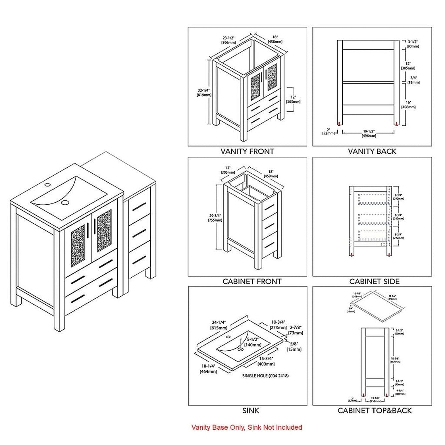 Blossom Sydney 36" White Freestanding Vanity Base With Side Cabinet