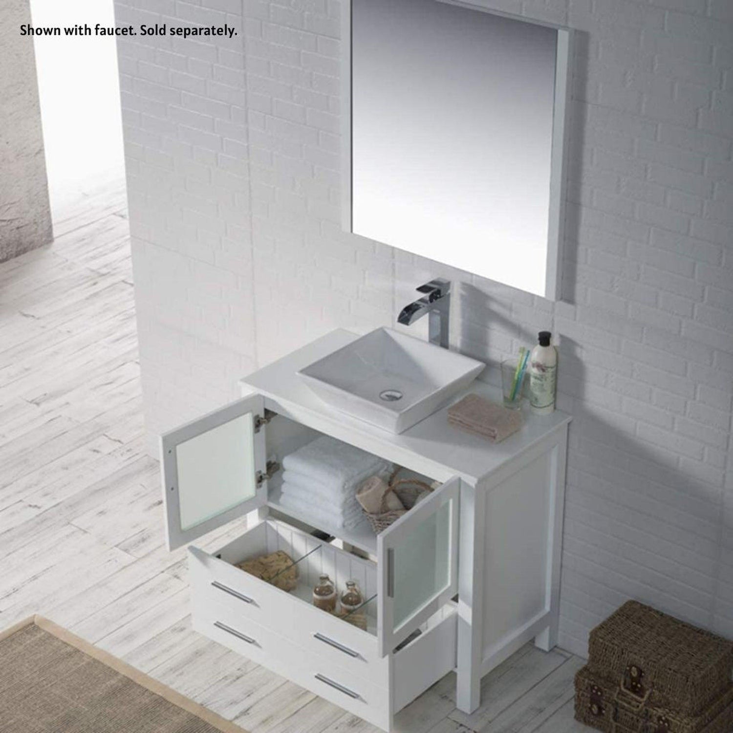 Blossom Sydney 36" White Freestanding Vanity Set With Ceramic Vessel Single Sink and Mirror