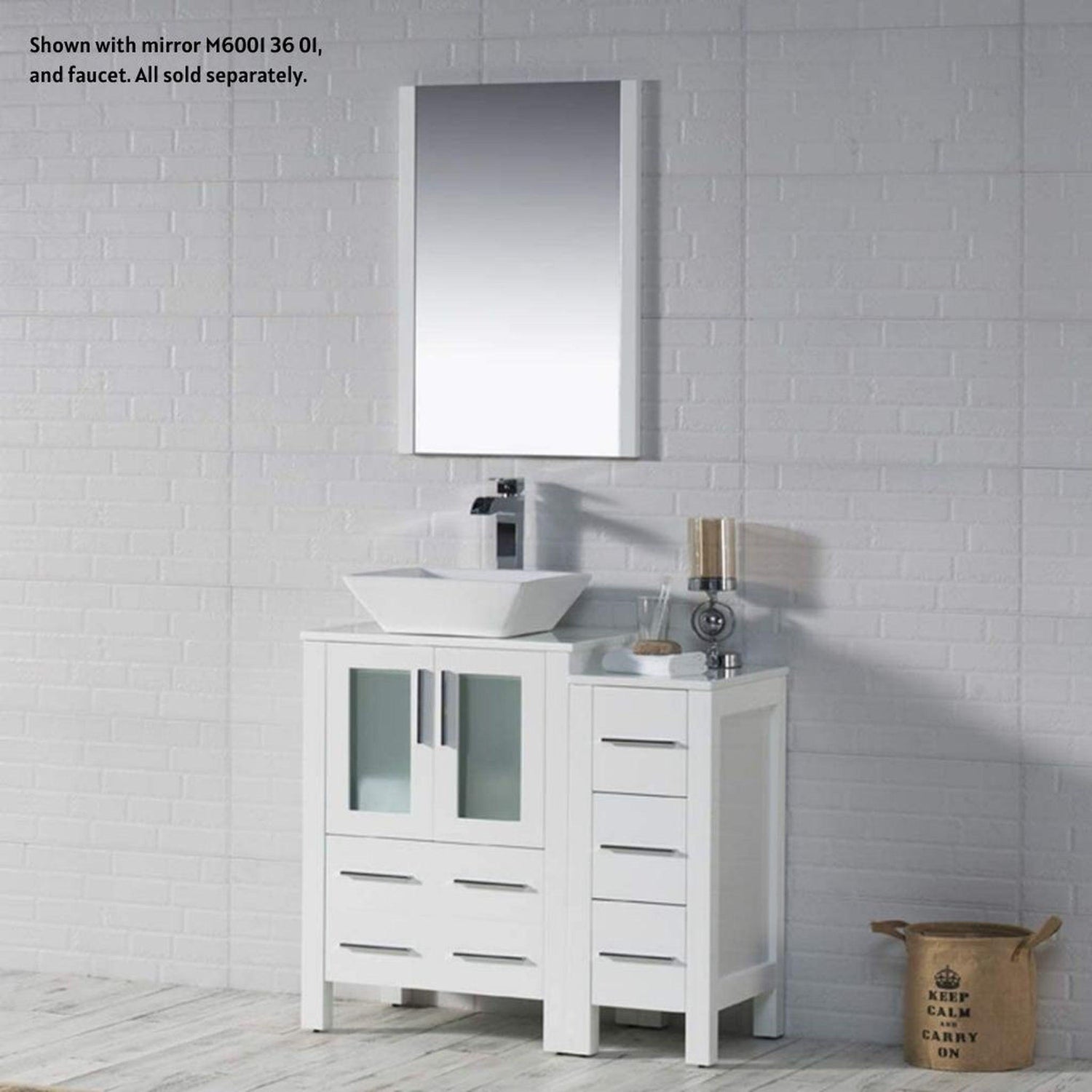 Blossom Sydney 36" White Freestanding Vanity Set With Ceramic Vessel Single Sink and Side Cabinet