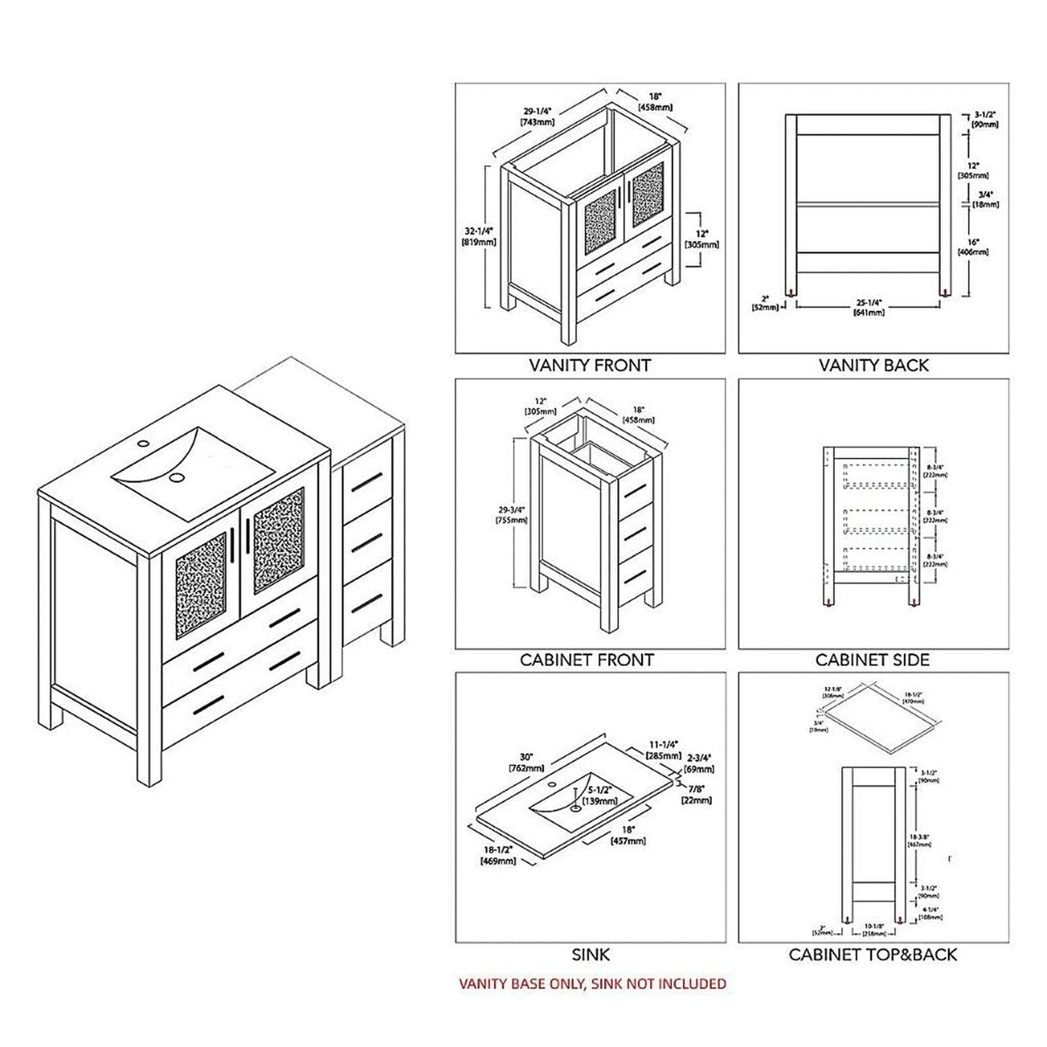 Blossom Sydney 42" Espresso Freestanding Vanity Base With Side Cabinet