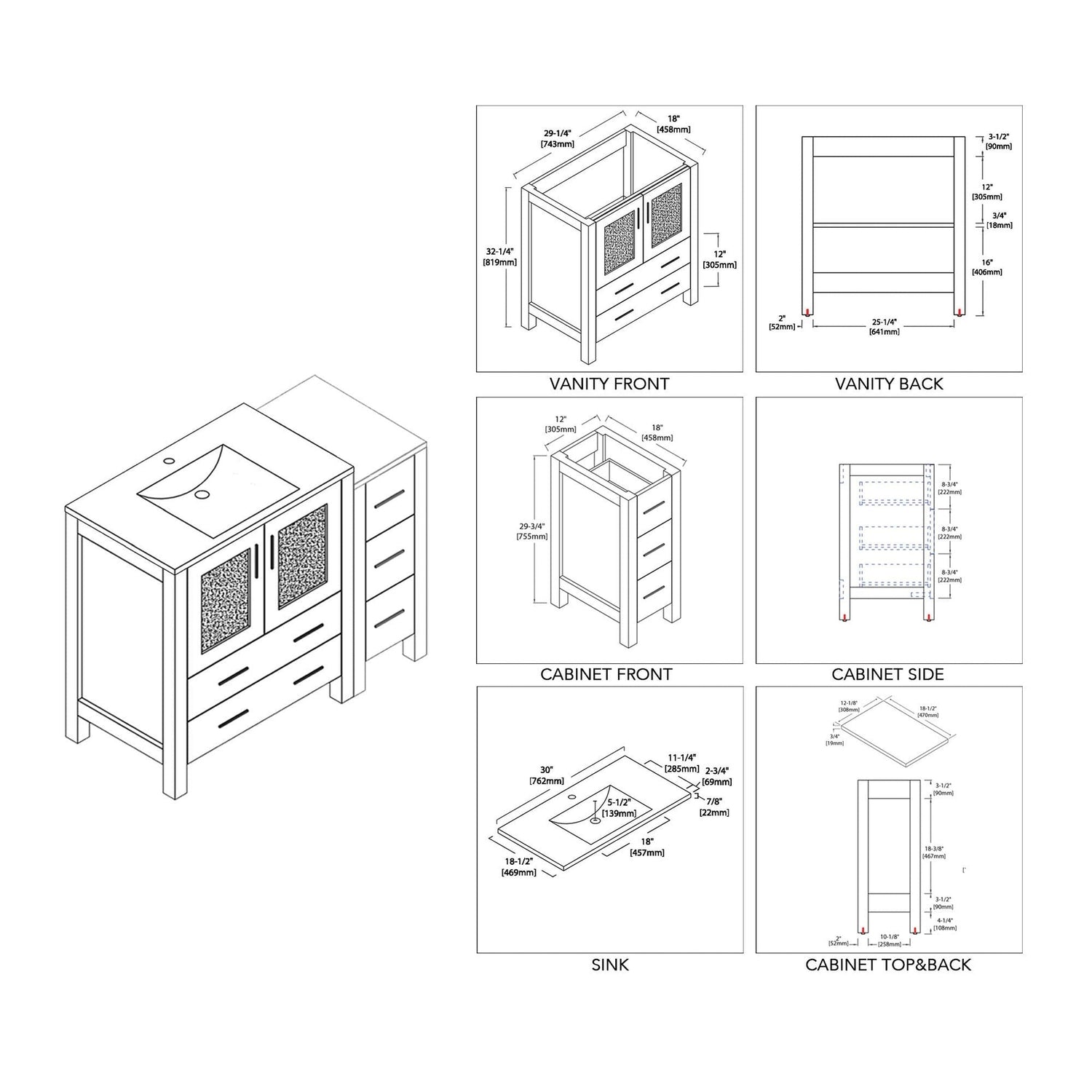 Blossom Sydney 42" Espresso Freestanding Vanity Set With Integrated Single Sink Ceramic Top and Side Cabinet