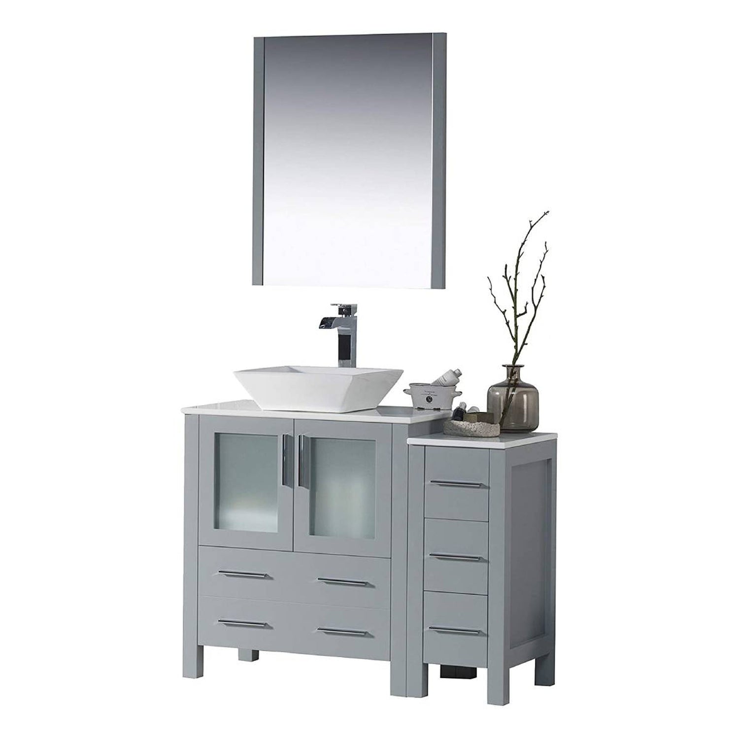 Blossom Sydney 42" Metal Gray Freestanding Vanity Set With Ceramic Vessel Single Sink, Mirror and Side Cabinet