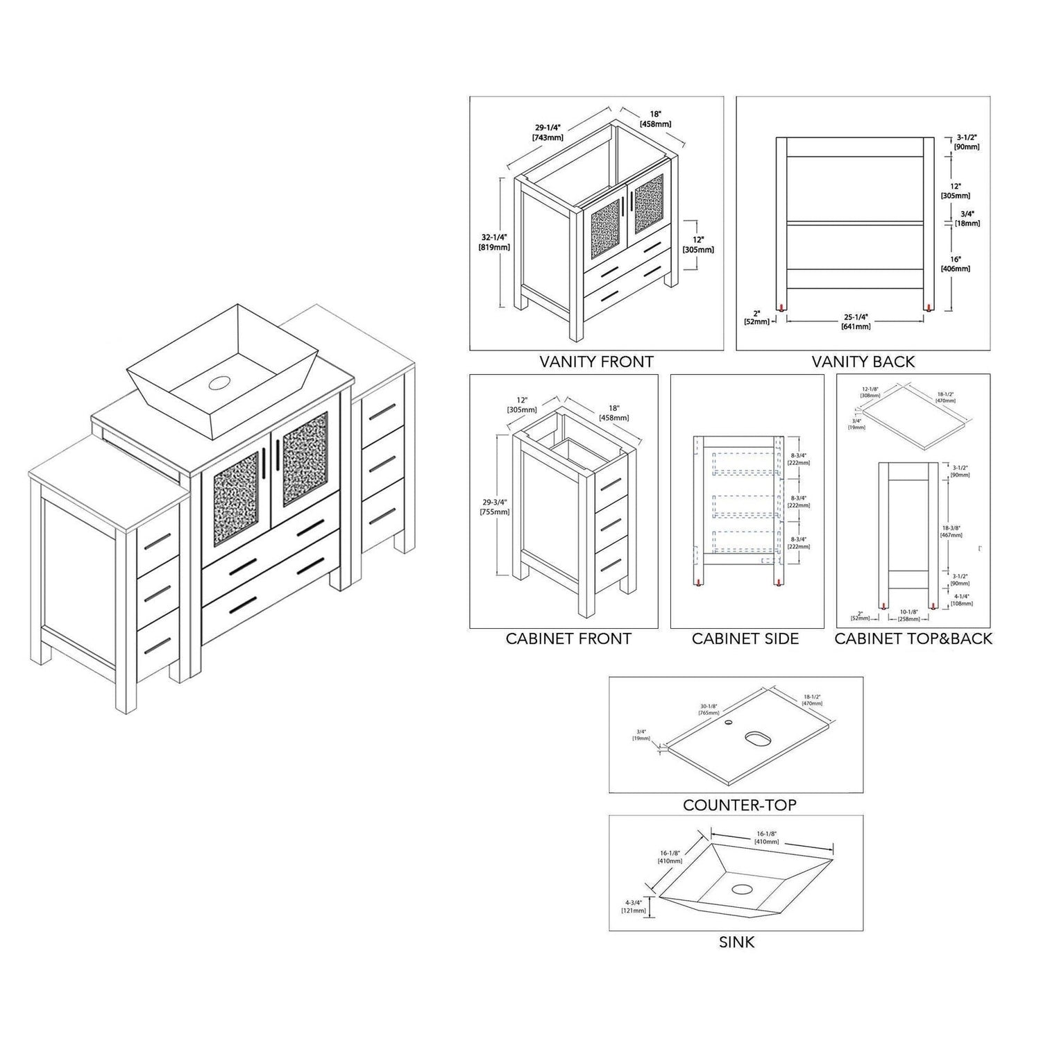 Blossom Sydney 54" Metal Gray Freestanding Vanity Set With Ceramic Vessel Single Sink