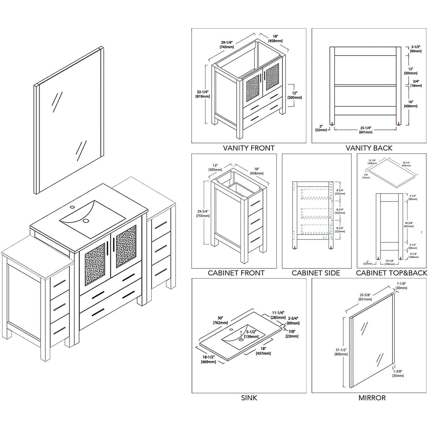 Blossom Sydney 54" Metal Gray Freestanding Vanity Set With Integrated Single Sink Ceramic Top and Mirror