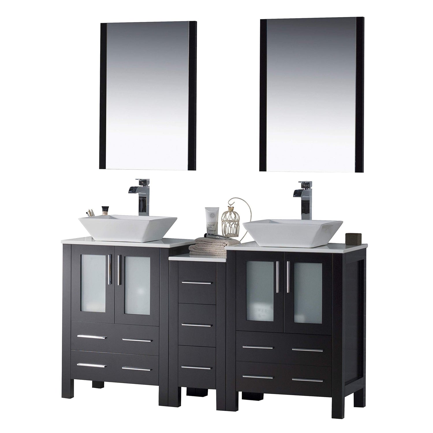Blossom Sydney 60" Espresso Freestanding Vanity Set With Ceramic Vessel Single Sink and Mirror