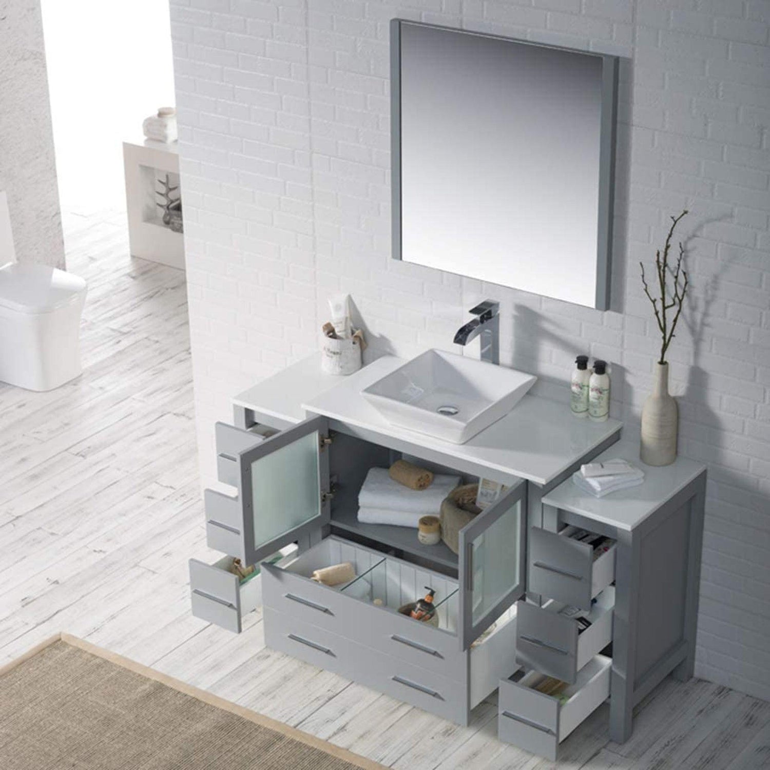 Blossom Sydney 60" Metal Gray Freestanding Vanity Set With Ceramic Vessel Single Sink, Mirror and Side Cabinet