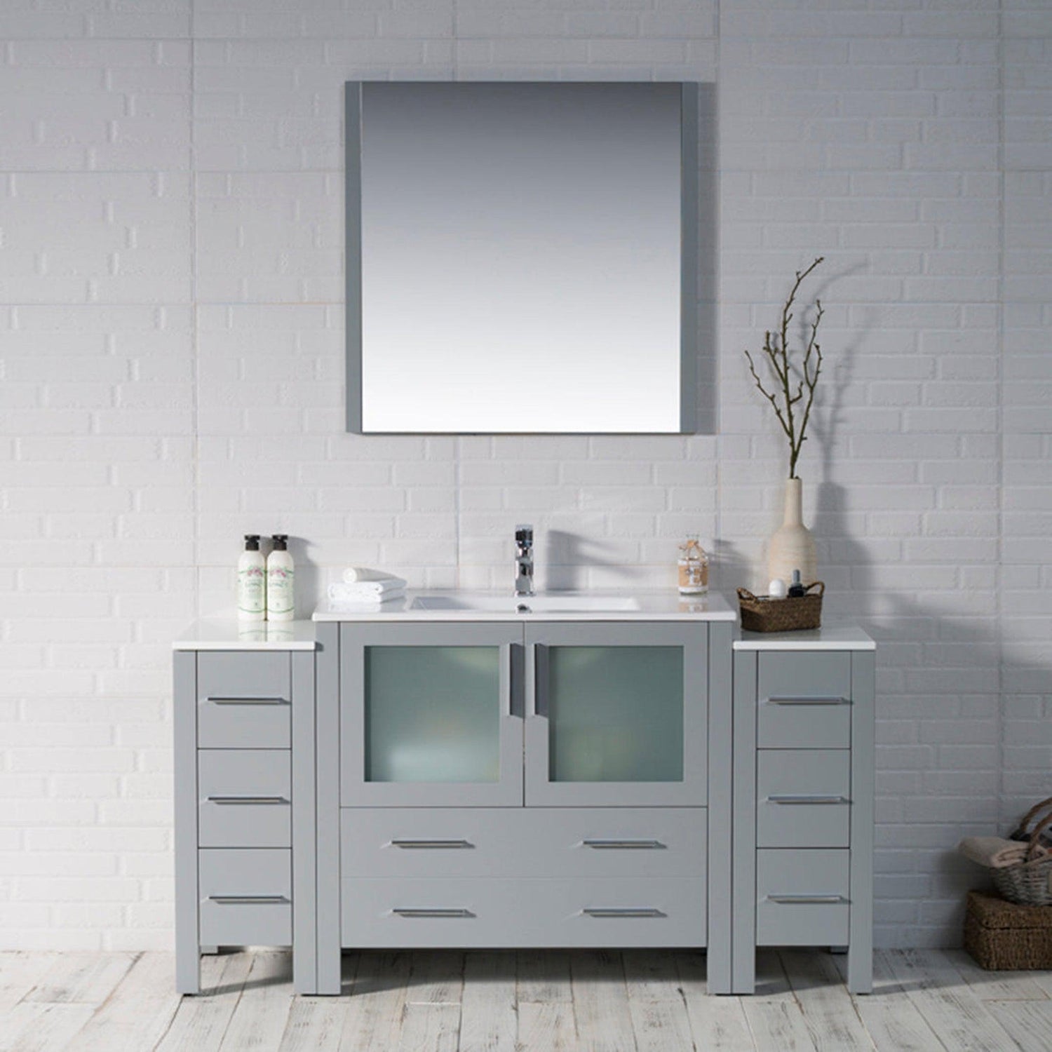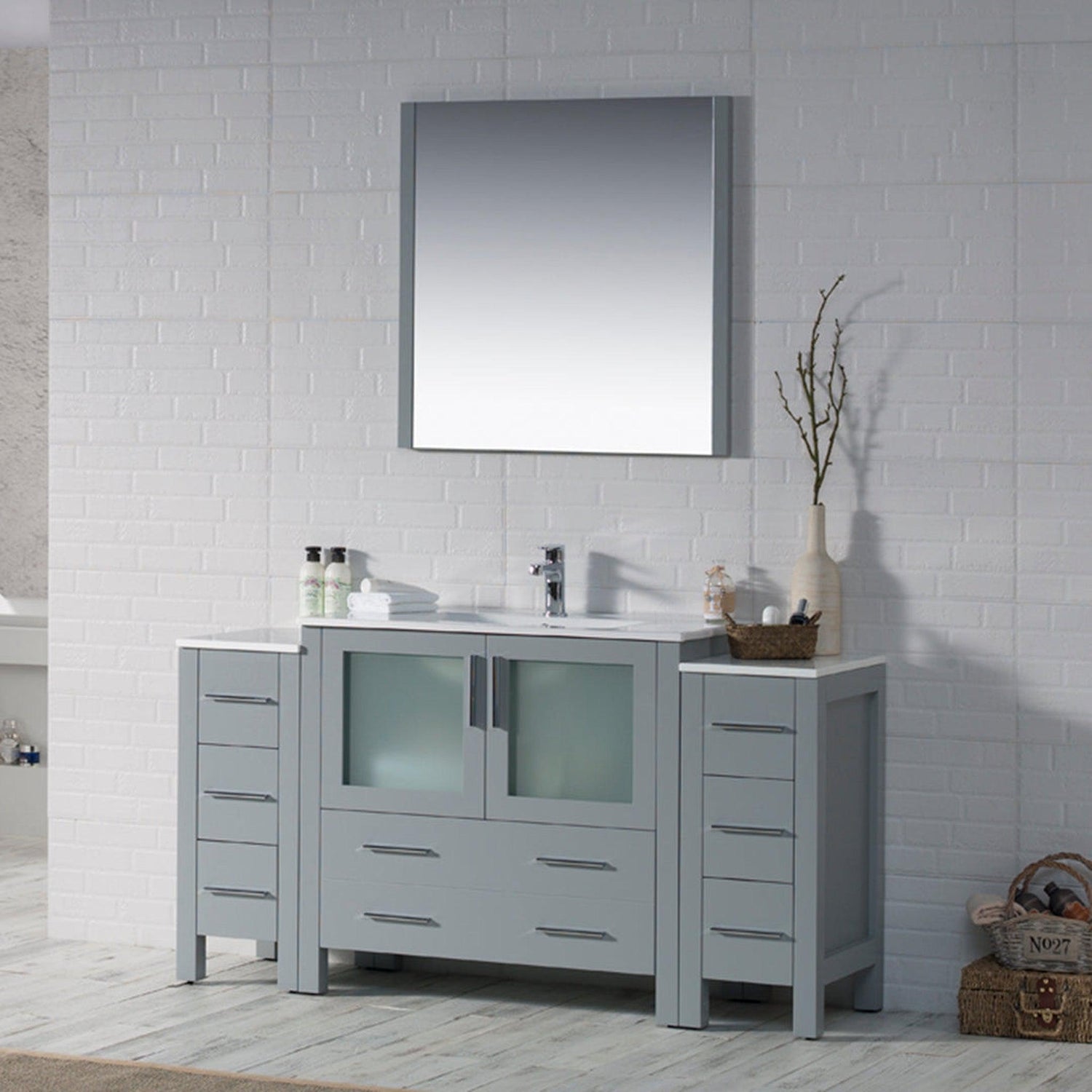 Blossom Sydney 60" Metal Gray Freestanding Vanity Set With Integrated Double Sink Ceramic Top and Two Side Cabinet