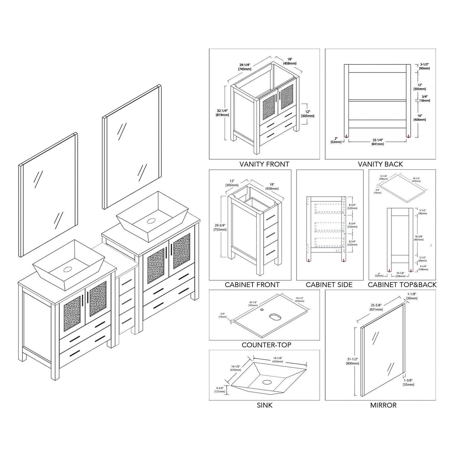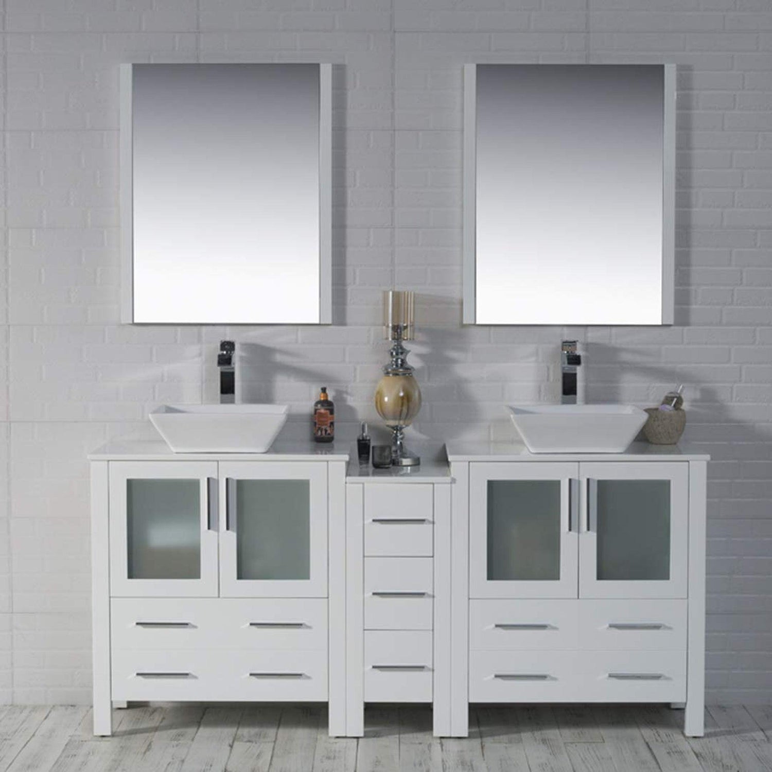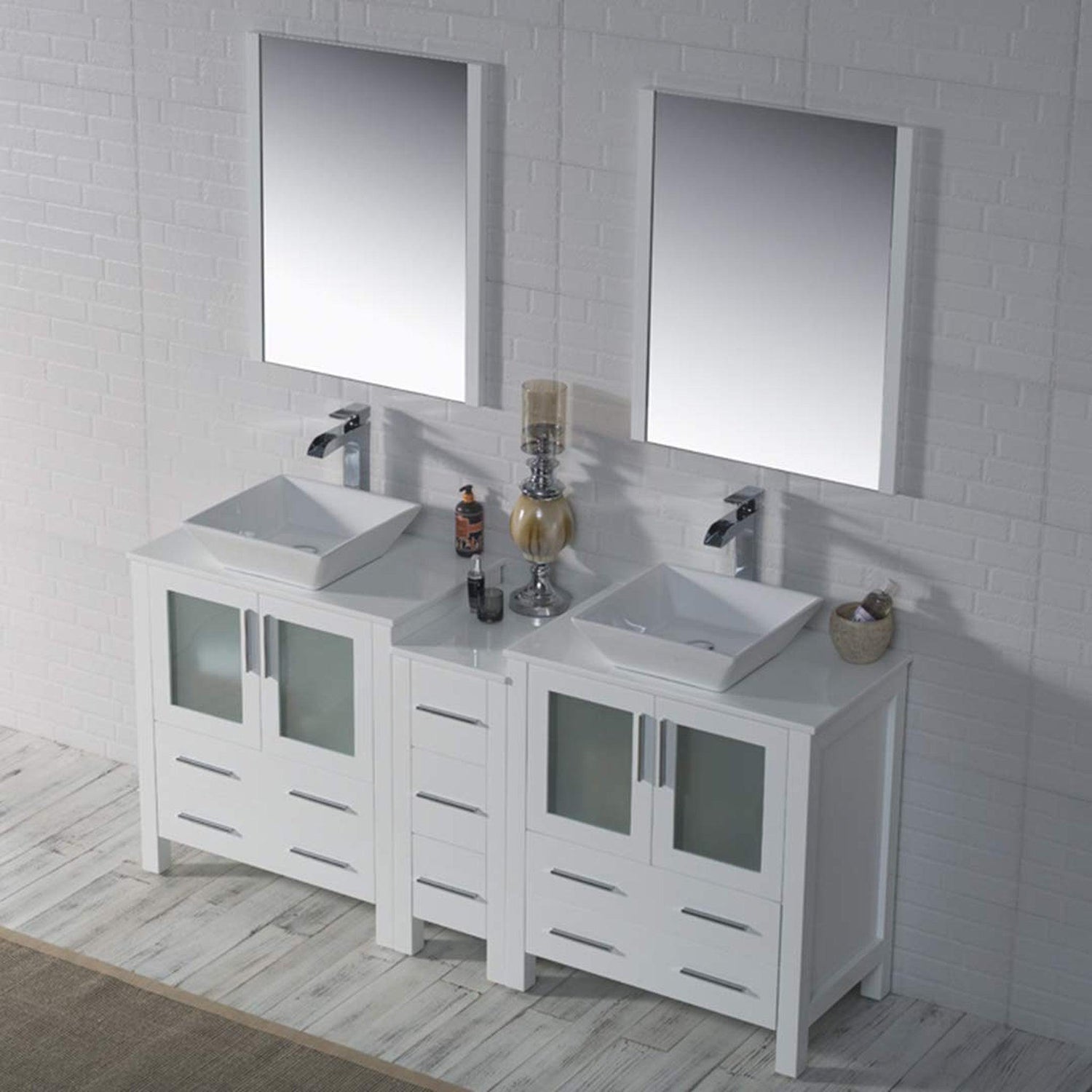 Blossom Sydney 72 White Freestanding Vanity Set With Ceramic Vessel Single Sink and Mirror