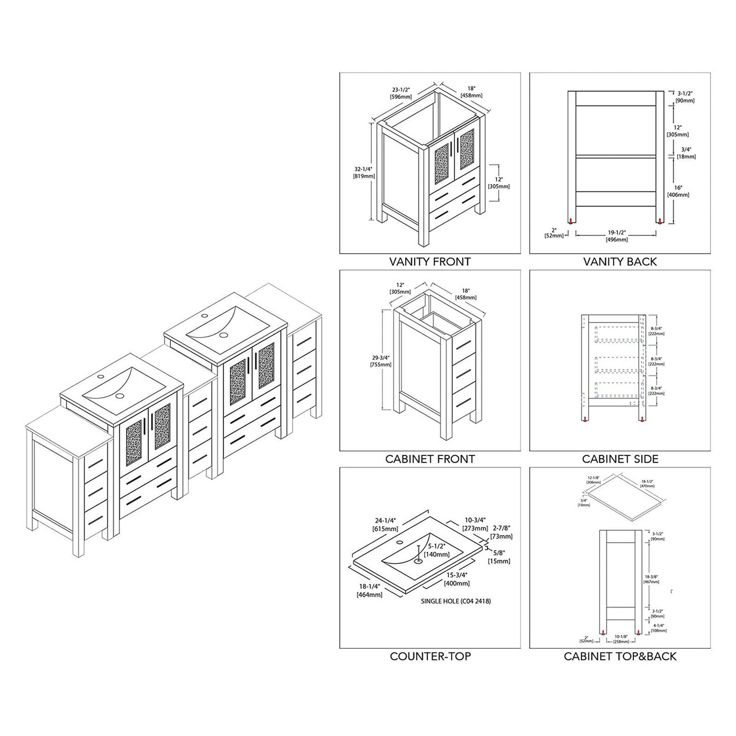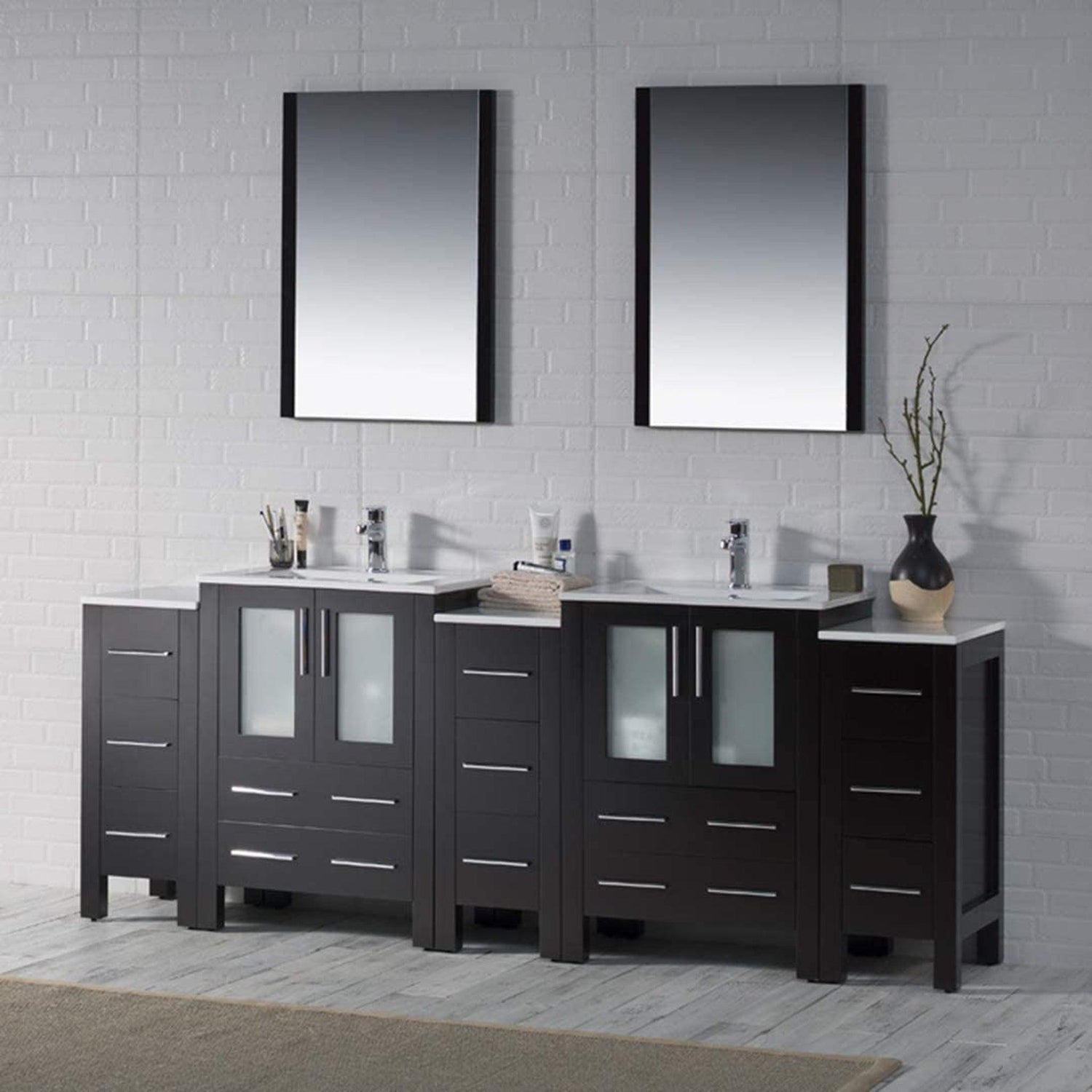 Blossom Sydney 84" Espresso Freestanding Vanity With Integrated Double Sinks Ceramic Top and Three Side Cabinet