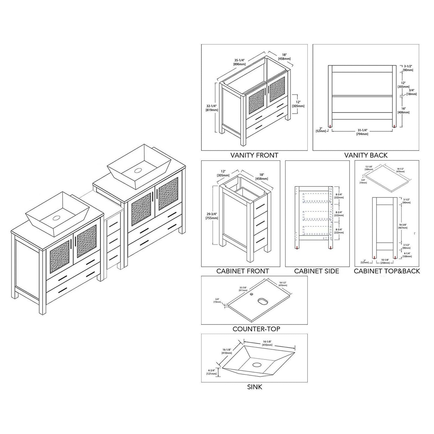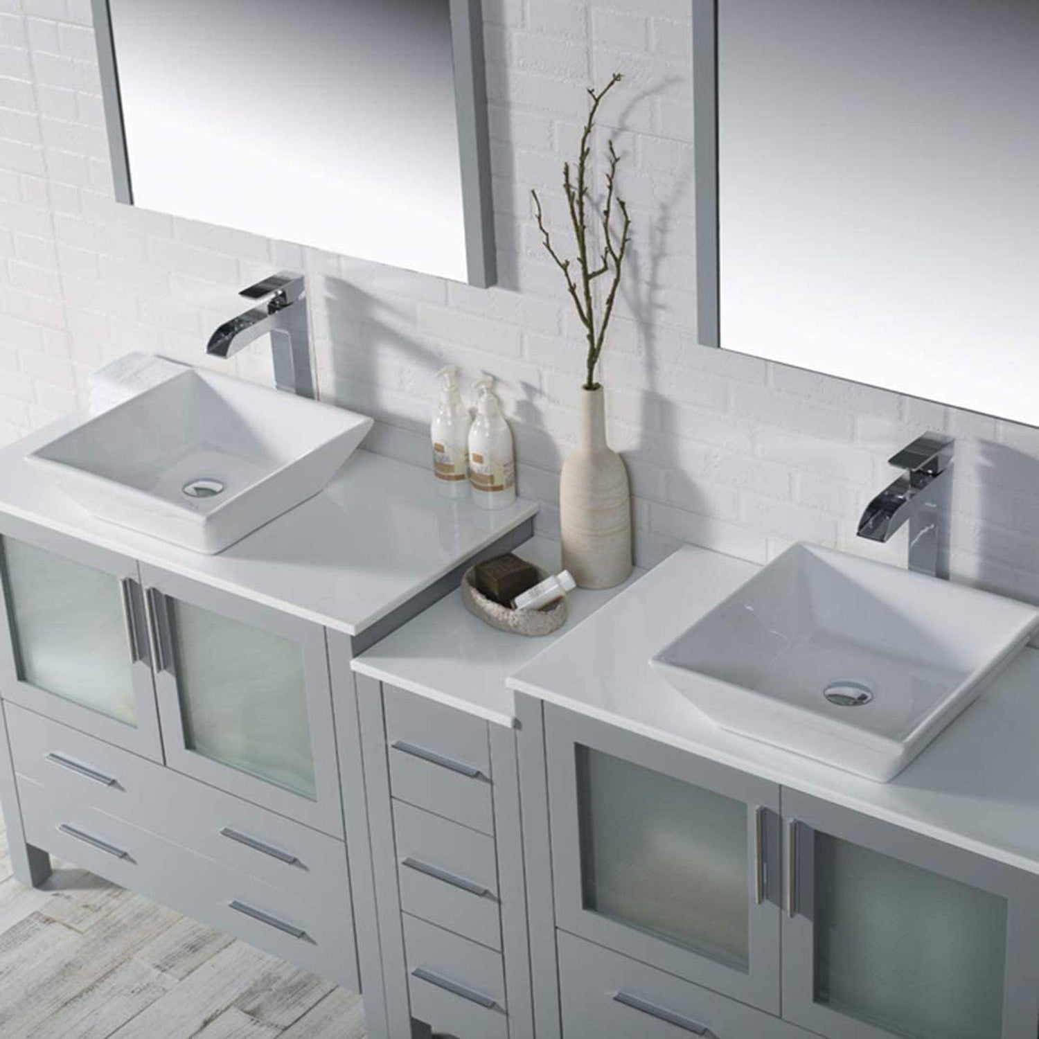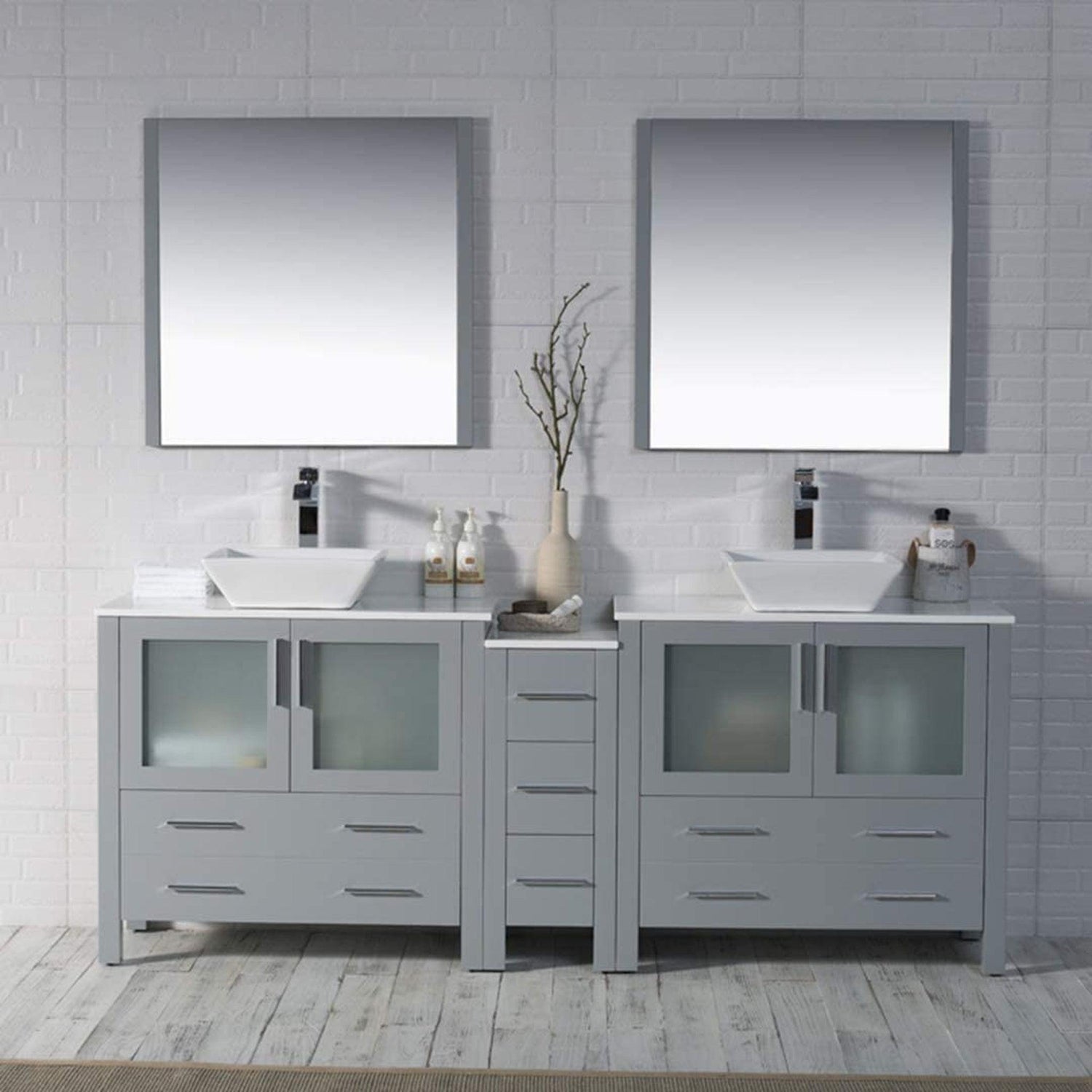 Blossom Sydney 84" Metal Gray Freestanding Vanity Set With Ceramic Double Vessel Sinks