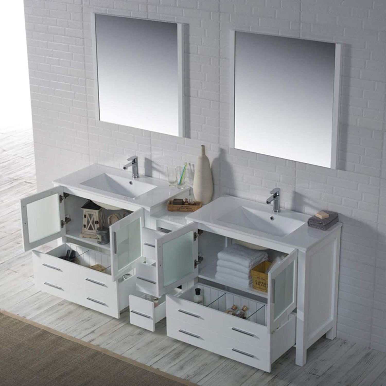 Blossom Sydney 84" White Freestanding Vanity Set With Ceramic Top and Integrated Double Sinks