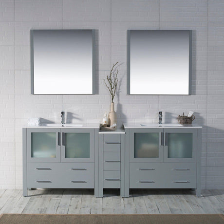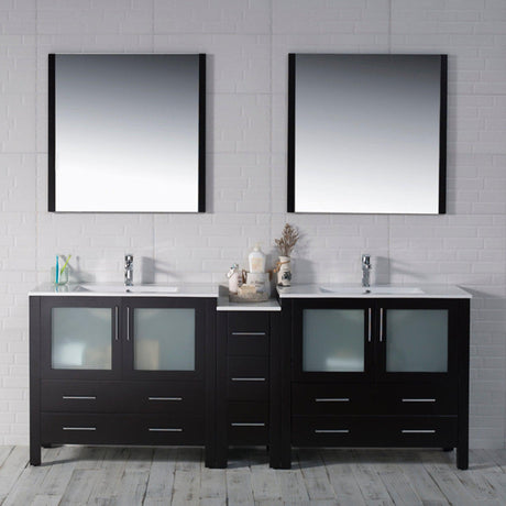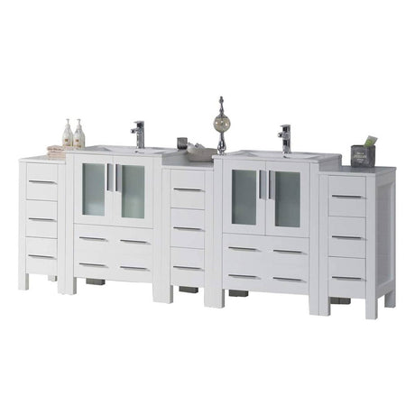 Blossom Sydney 84" White Freestanding Vanity With Ceramic Top, Integrate...