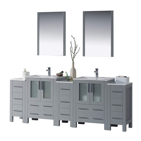 Blossom Sydney 84" Metal Gray Freestanding Vanity With Ceramic Top, Inte...