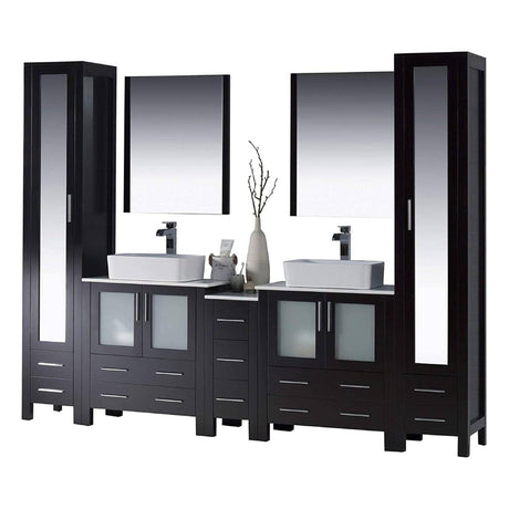 Blossom Sydney 102" Espresso Freestanding Vanity With Ceramic Double Ves...