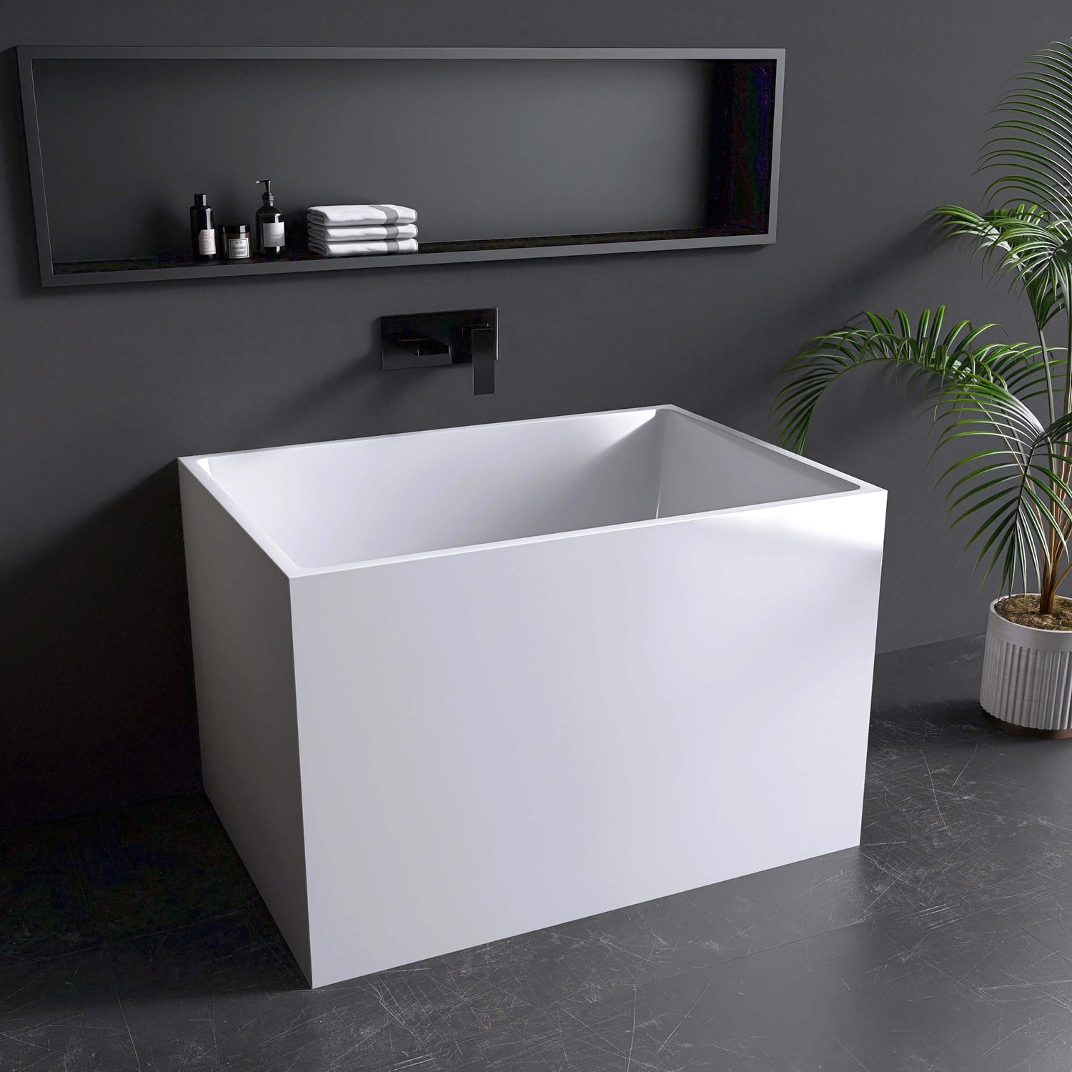 New England Home Goods Elafonissi 39" Freestanding Tub in White - Stone Resin Solid Surface