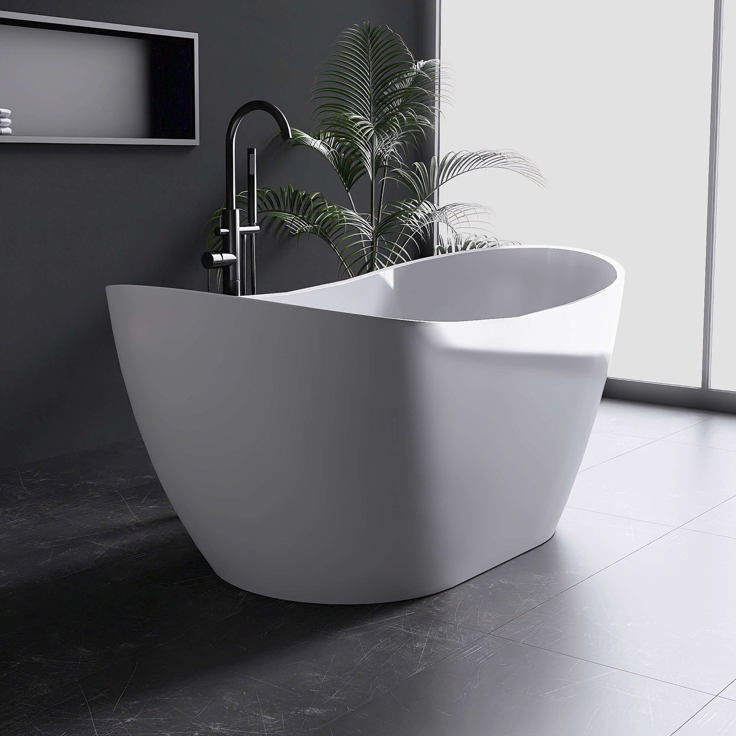 New England Home Goods Logan 60" Freestanding Tub in White - Stone Resin Solid Surface