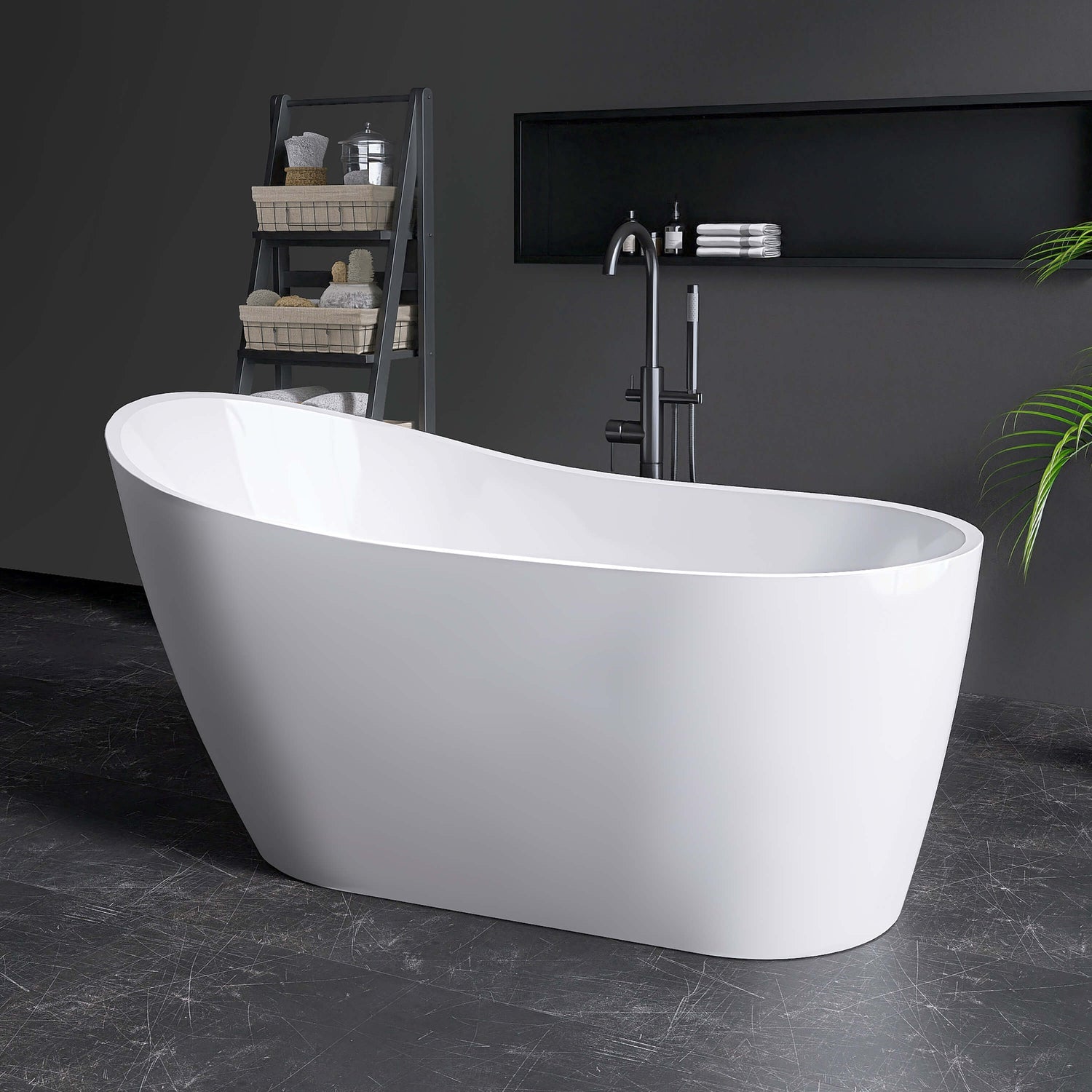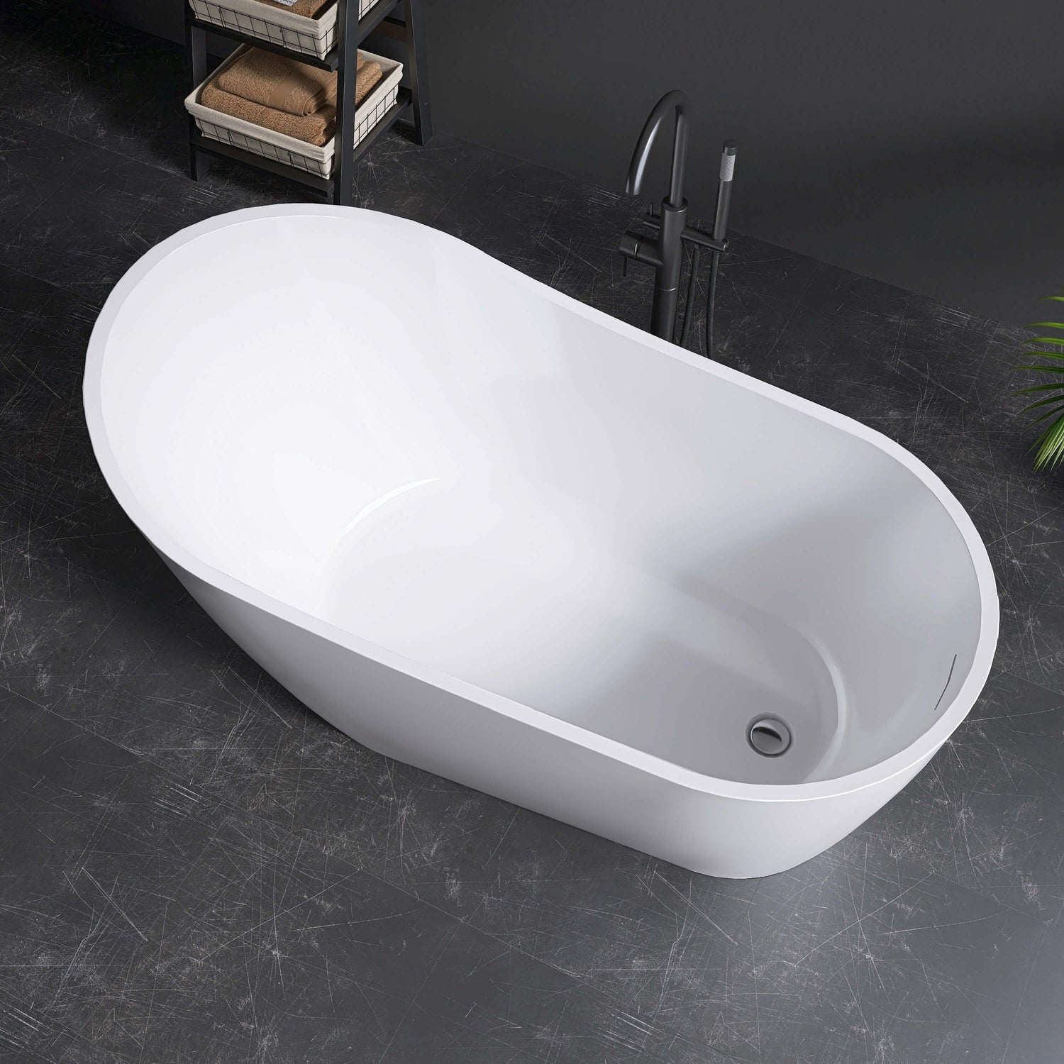 New England Home Goods Matira 59" Freestanding Tub in White - Stone Resin Solid Surface
