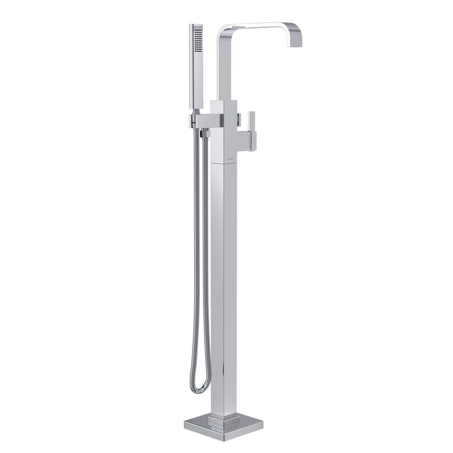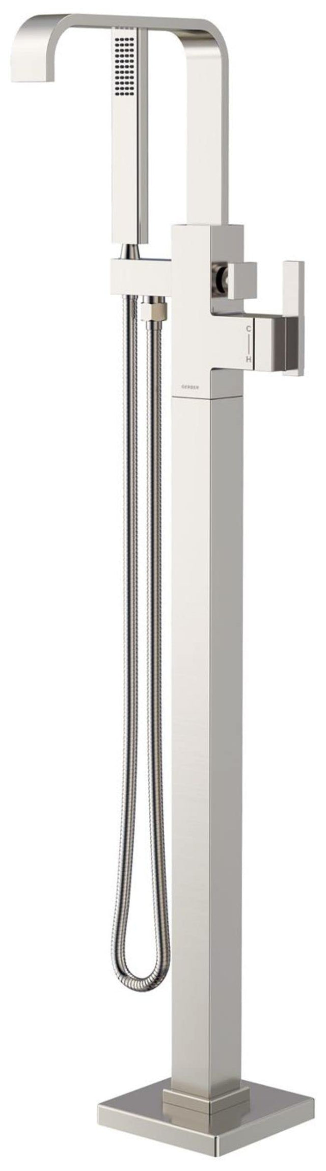 Gerber Plumbing has been manufacturing home improvement plumbing tools from shower heads to faucets to china fixtures since 2001. Not only providing necessities, the products include a variety of decorative faucets and bath accessories. Designed with comfort, durability and style in mind, there is no question that this should be your choice when it comes to modern plumbing. Product Information Product Overview Flow Rate: 1.75 gpm Max Flow @ 80 psi Installation: 1-Hole InstallationBrand: Gerber Features 1.75 gpm Maximum Flow Rate @ 90 psi Cartridge Type: Includes Ceramic Disc Pressure Balance CartridgeEasy Clean Nozzles: Features Easy Clean Soft-Touch NozzlesIntegral Check Valve: Includes integral check valve for backflow preventionWarranty: Limited lifetime Description An impressive ascent capped off with an artistically arched spout the Square Floor Mount Tub Filler offers a polished vibe balanced with angular edges. Designed to deliver high style to bathroom settings a range of finish options allow you to create the decor of your dreams . A ceramic disc pressure balance cartridge offers years of reliable drip-free operation. A handshower with flexible 59 metal shower hose provides rinsing flexibility when bathing. Designed to coordinate with a variety of modern Gerber faucet styles bring bathroom brilliance with the Square Floor Mount Tub Filler. Components Includes: Single-Function HandshowerSold Separately Required: Required: Rough-in valve for floor mount tub filler D315000bt