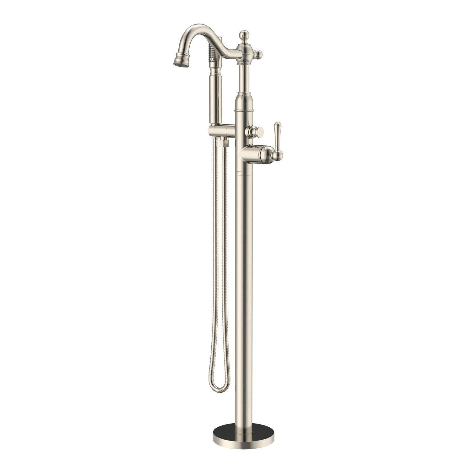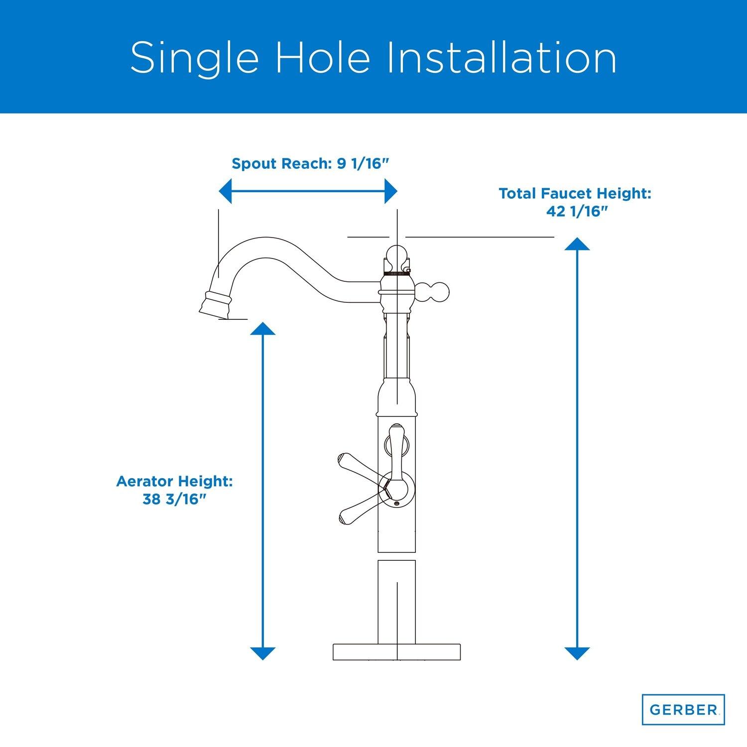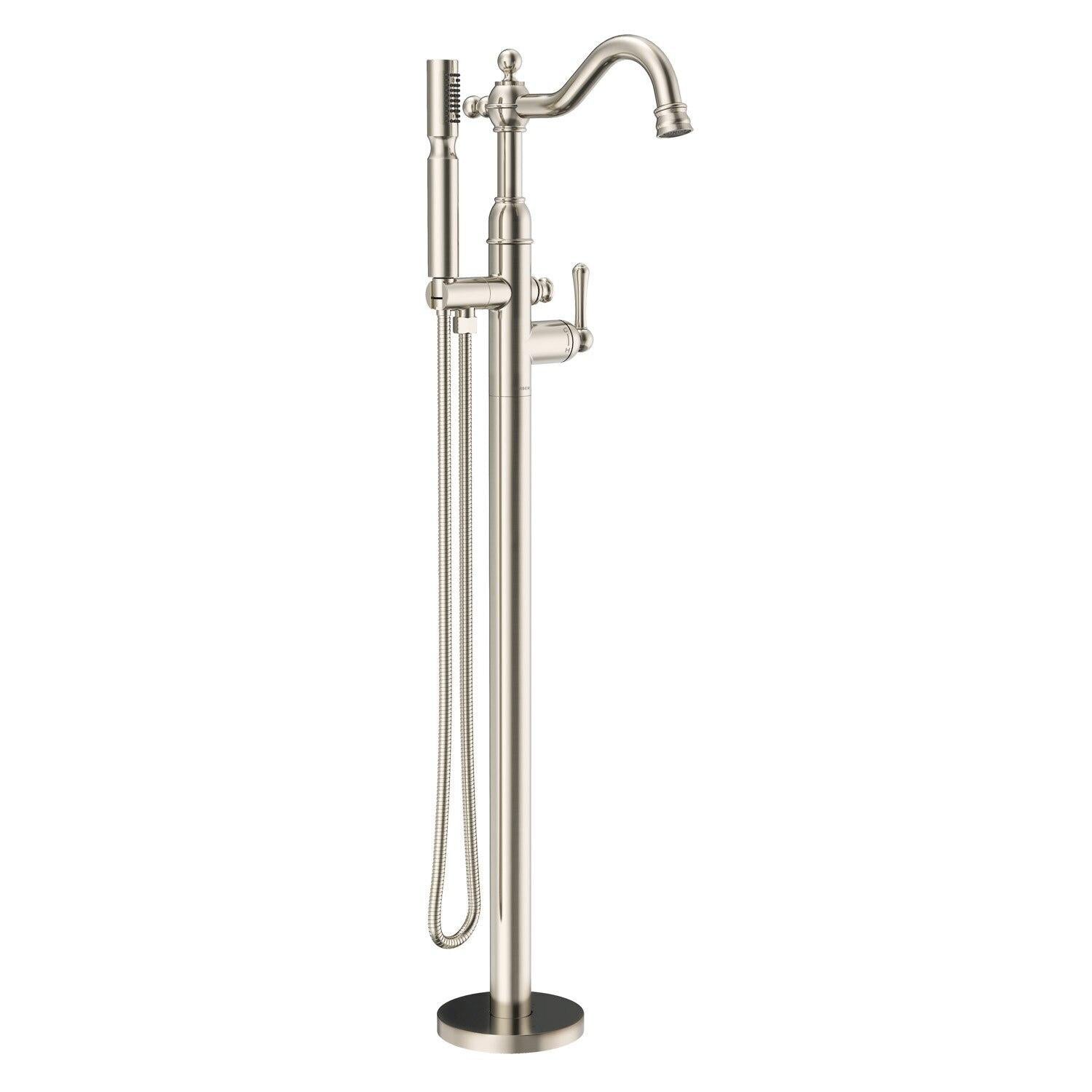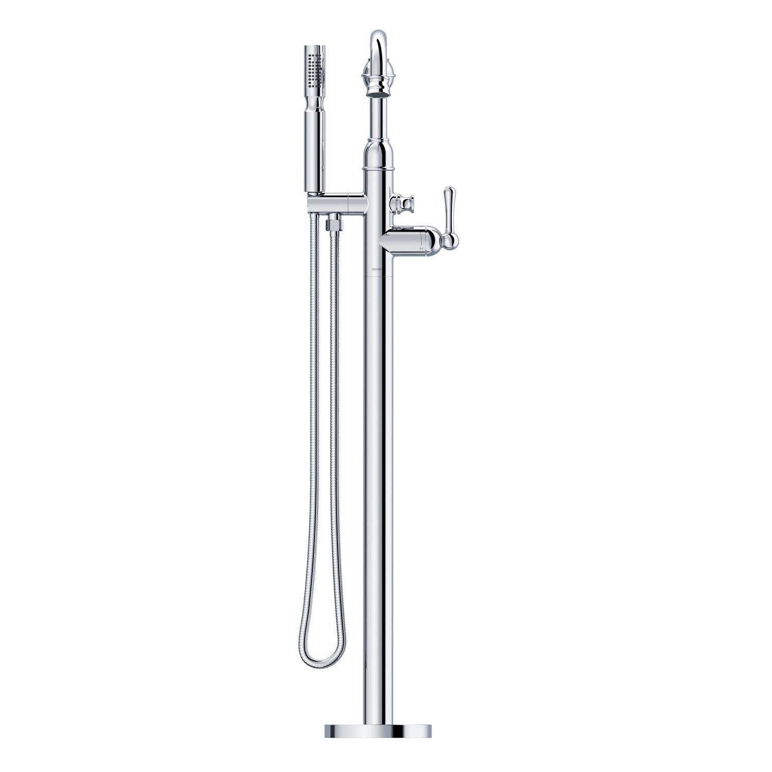 Gerber Plumbing has been manufacturing home improvement plumbing tools from shower heads to faucets to china fixtures since 2001. Not only providing necessities, the products include a variety of decorative faucets and bath accessories. Designed with comfort, durability and style in mind, there is no question that this should be your choice when it comes to modern plumbing. Product Information Product Overview Flow Rate: 1.75 gpm Max Flow @ 80 psi Installation: 1-Hole InstallationBrand: Gerber Features 1.75 gpm Maximum Flow Rate @ 90 psi Cartridge Type: Includes Ceramic Disc Pressure Balance CartridgeEasy Clean Nozzles: Features Easy Clean Soft-Touch NozzlesIntegral Check Valve: Includes integral check valve for backflow preventionWarranty: Limited lifetime Description The Traditional floor mount tub filler offers sophisticated style rich with classic charm. A uniquely curved spout highlighted by vintage detailing adds a beautiful complement to standalone tubs. Crafted with durability and dependable operation in mind this tub filler is solidly built and includes a ceramic disc pressure balance cartridge for enduring drip-free operation. An handshower with flexible 59 metal shower hose provides rinsing flexibility when bathing. This tub filler is designed coordinate with a variety of traditional Gerber faucet styles to complete your dream bathroom. Components Includes: Single-Function HandshowerSold Separately Required: Required: Rough-in valve for floor mount tub filler D315000bt