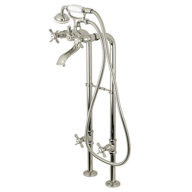 Distinguished for its elegance, sophistication, and exquisite architecture, this freestanding tub faucet is the perfect fixture for any traditional home. Allow it to both complement your freestanding tub and act as a beautiful ornamental piece in your bathroom. As the perfect accompaniment to your tub, the Kingston Freestanding Tub Faucet with Supply Line, Stop Valve and Handle will surely complete your refined bathroom decorum with the help of its premium, glistening polished nickel finish and hand shower. The solid brass construction also makes for a heavy, quality made product.