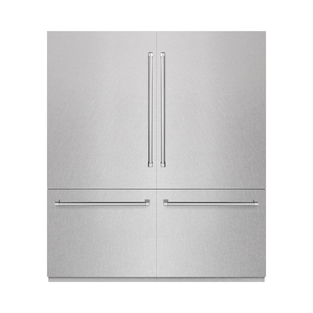 ZLINE 72 in. 39.6 cu. ft. French Door Built-In Bottom Freezer Refrigerator with Water Dispensers and Ice Makers in DuraSnow® Stainless Steel with Graphite Gray Interior (GRBIT-SN-72)