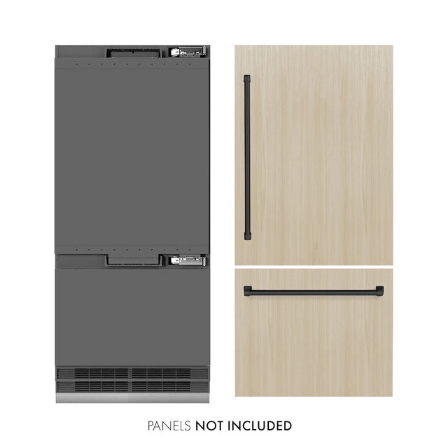 ZLINE Autograph Edition 36 in. 19.8 cu. ft. Panel Ready Built-In Bottom Freezer Refrigerator with Water Dispenser and Ice Maker with Graphite Gray Interior and Matte Black Accents (GRBITZ-36-MB)