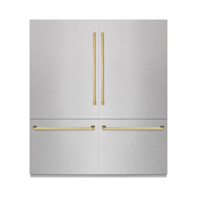 ZLINE Autograph Edition 72 in. 39.6 cu. ft. French Door Built-In Bottom Freezer Refrigerator with Water Dispensers and Ice Makers in DuraSnow® Stainless Steel with Graphite Gray Interior and Polished Gold Accents (GRBITZ-SN-72-G)