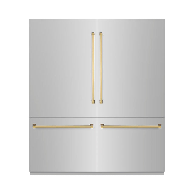 ZLINE Autograph Edition 72 in. 39.6 cu. ft. French Door Built-In Bottom Freezer Refrigerator with Water Dispensers and Ice Makers in Stainless Steel with Graphite Gray Interior and Polished Gold Accents (GRBITZ-304-72G)