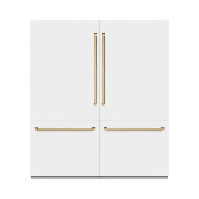 Luxury isn’t meant to be desired - it’s meant to be attainable. The ZLINE Autograph Edition 72 in. 39.6 cu. ft. French Door Built-In Bottom Freezer Refrigerator with Water Dispensers and Ice Makers in White Matte with Graphite Gray Interior and Champagne Bronze Accents (GRBITZ-WM-72-CB) provides the ultimate upgrade to the center of your home by pairing premium dual cooling technology with enhanced storage capacity for multiple grocery items. Achieve ZLINE Attainable Luxury® excellence with innovative features designed to enhance your kitchen’s cooling and freezing capability.