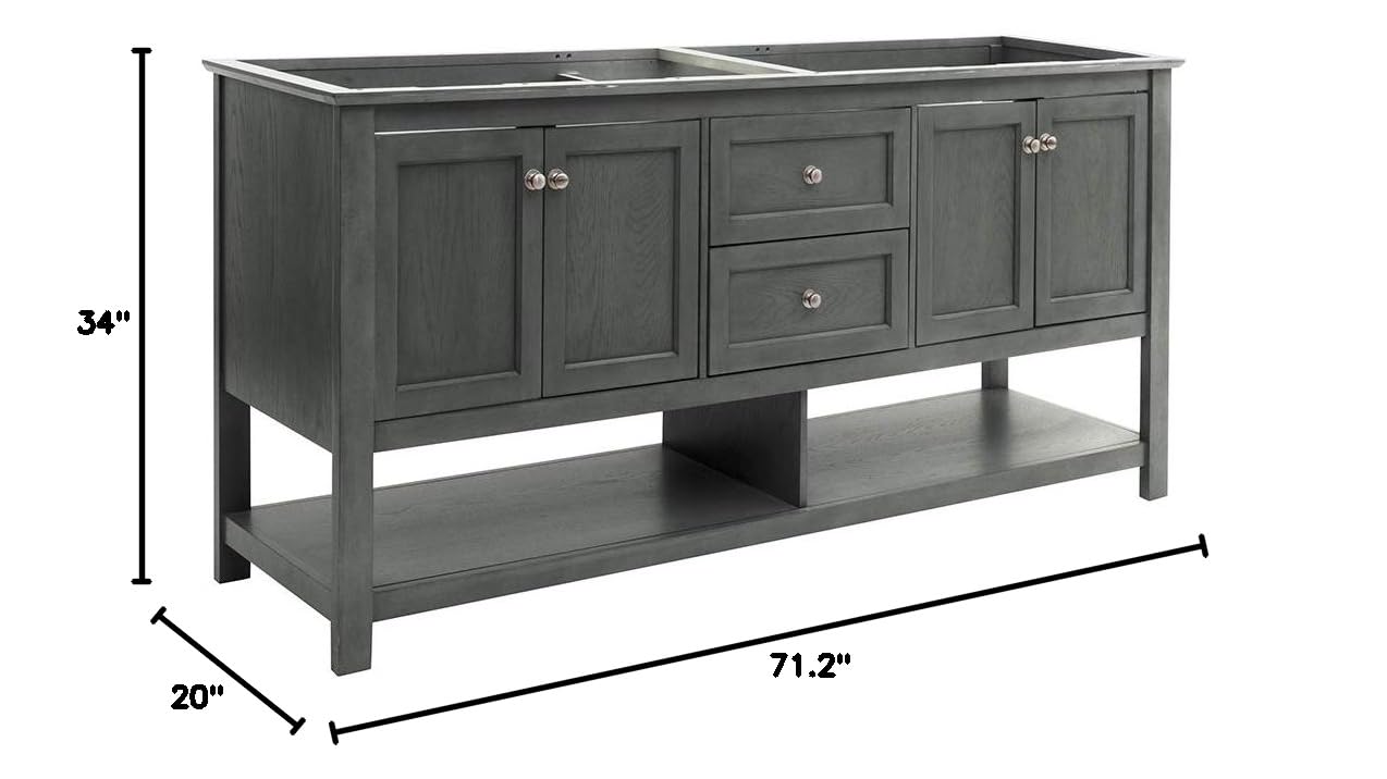 Fresca FCB2372VG-D Fresca Manchester Regal 72" Gray Wood Veneer Traditional Double Sink Bathroom Cabinet