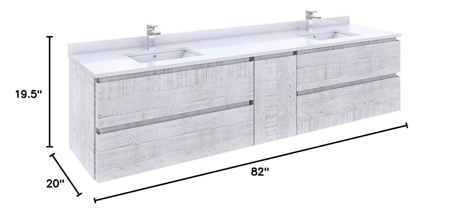Fresca FCB31-361236RWH Fresca Formosa 82" Wall Hung Double Sink Modern Bathroom Cabinet in Rustic White